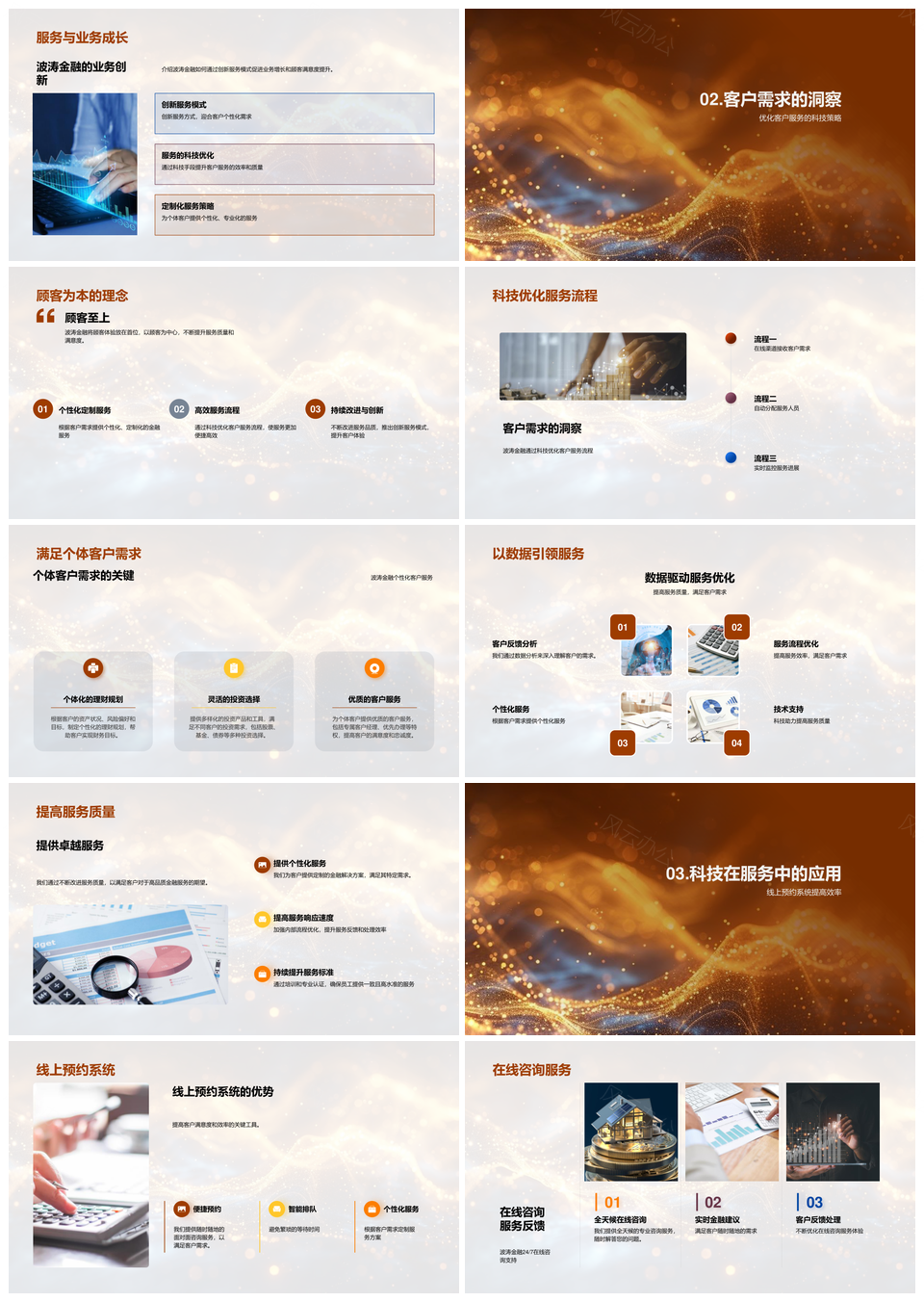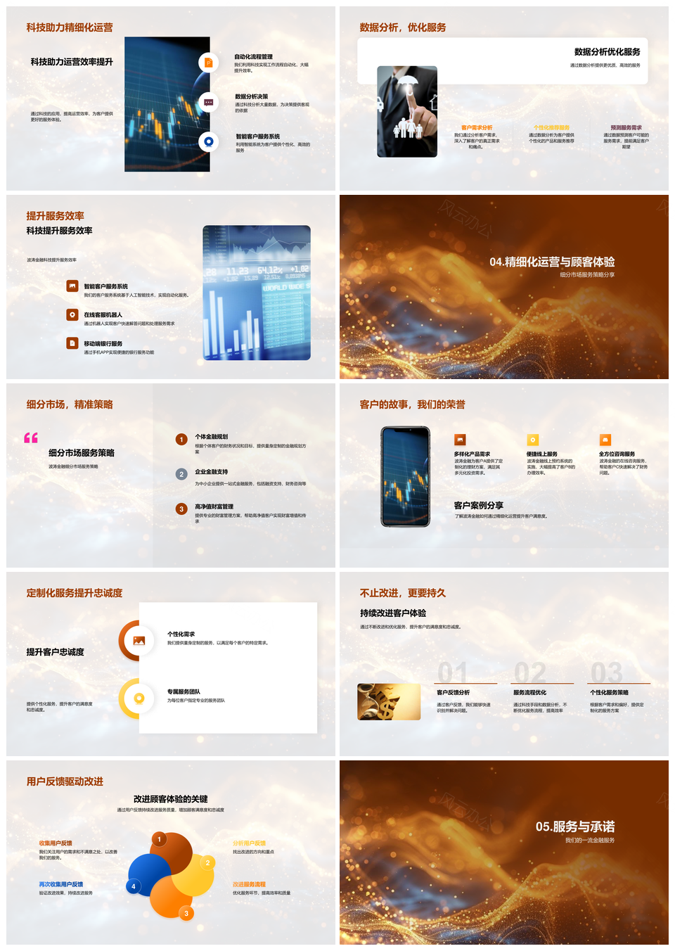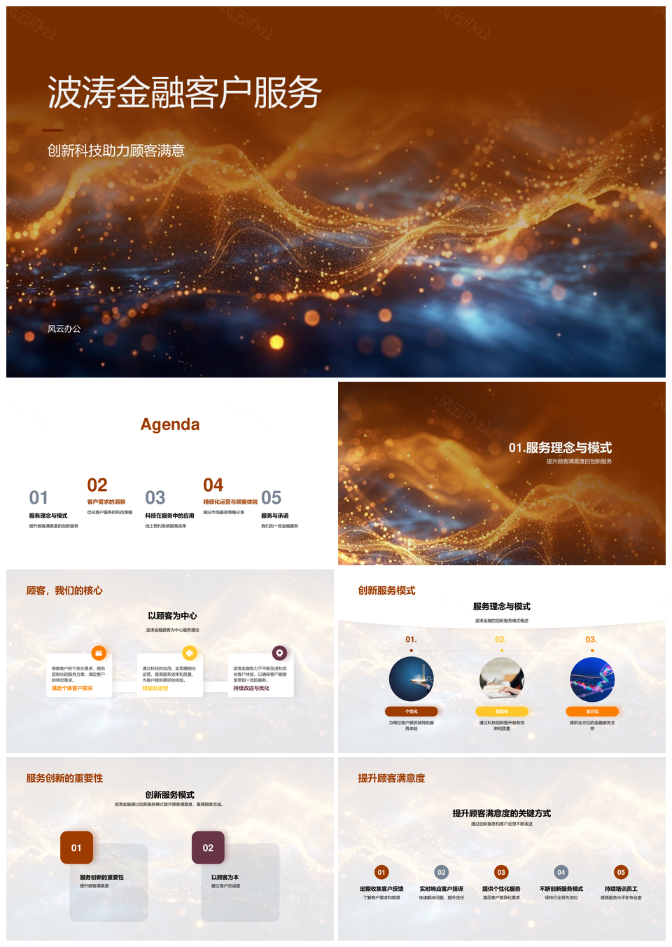 风云办公提供的波涛金融科技优化服务创新提升满意度PPT模板,下载格式为pptx,一共33页,作品中文字及图均可以修改和编辑,图片更改请在作品中右键图片并更换,文字修改请直接点击文字进行修改。