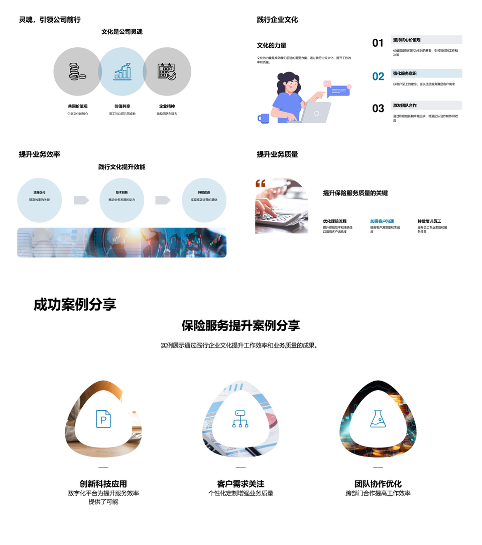 保险企业文化驱动业务效率服务团队协作PPT模板推荐