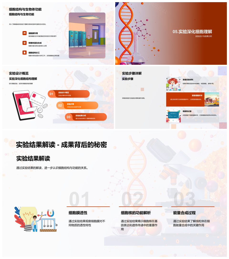 风云办公提供的细胞结构与功能微观世界实验解析PPT模板,下载格式为pptx,一共23页,作品中文字及图均可以修改和编辑,图片更改请在作品中右键图片并更换,文字修改请直接点击文字进行修改。