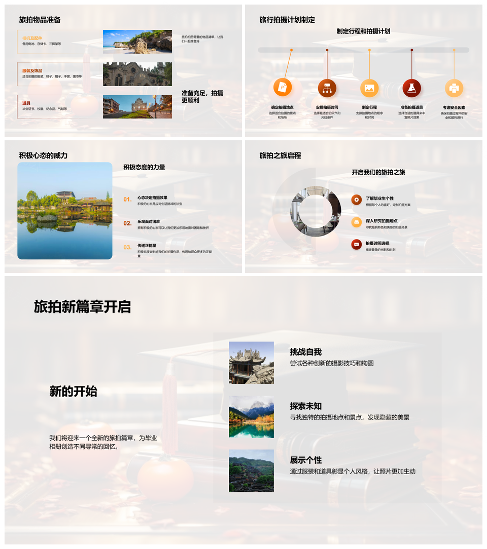 毕业旅拍相册技巧服饰道具选景摄影毕业帽指南PPT模板推荐