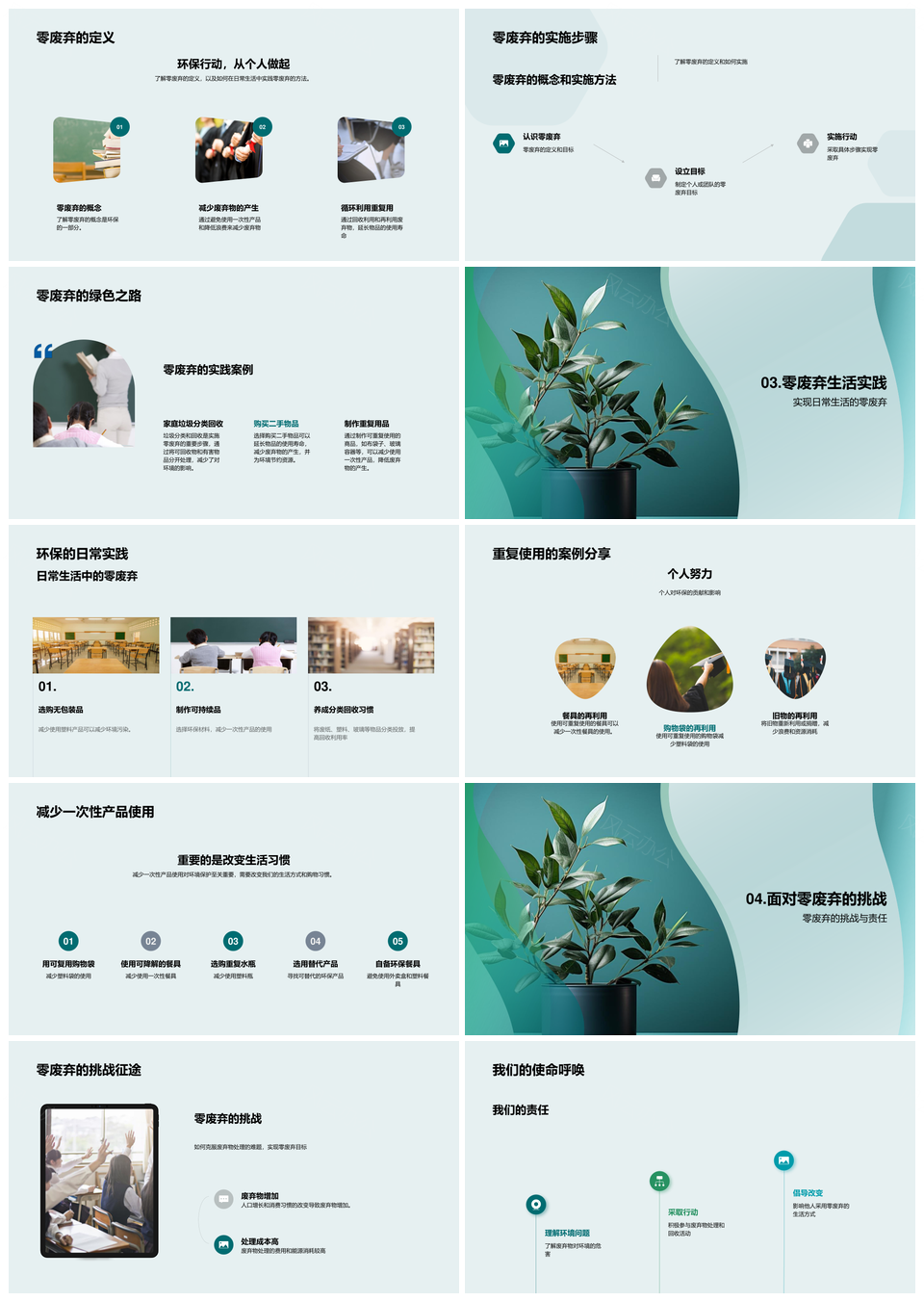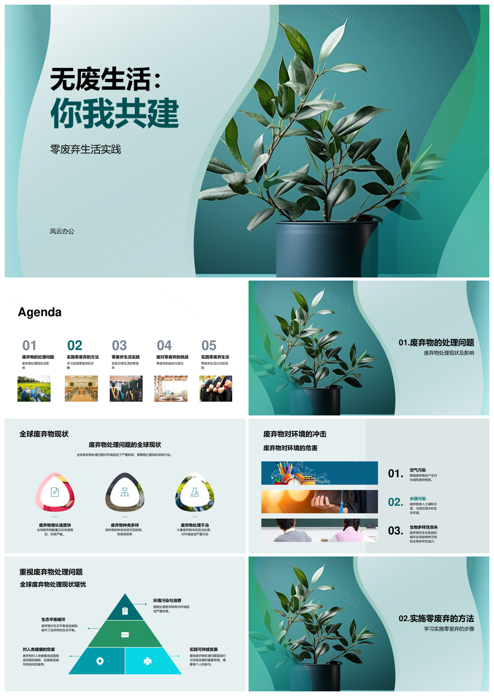 风云办公提供的无废生活零废弃实践环保教育地球减负PPT模板,下载格式为pptx,一共23页,作品中文字及图均可以修改和编辑,图片更改请在作品中右键图片并更换,文字修改请直接点击文字进行修改。