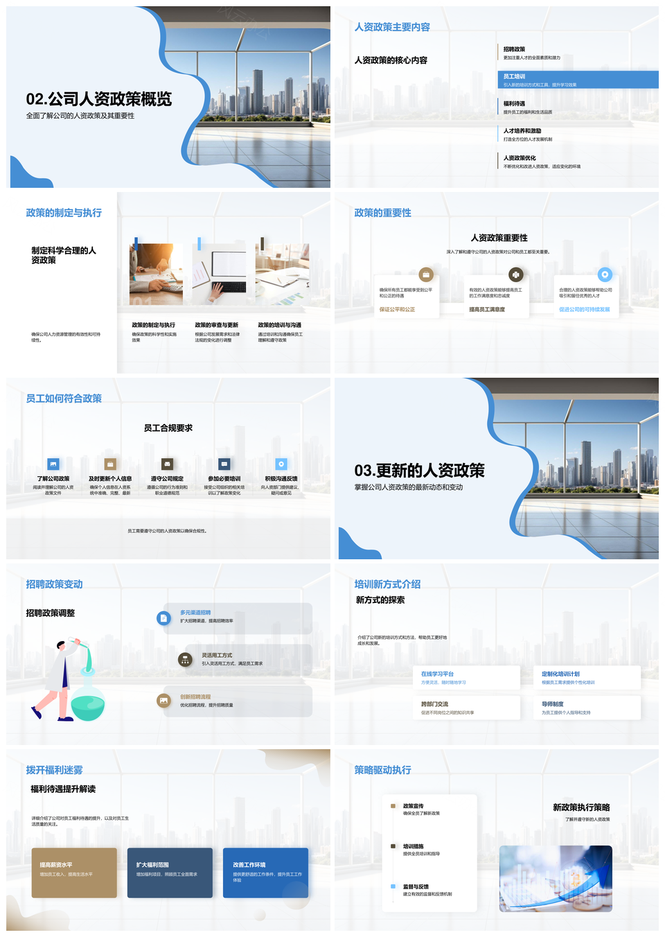 人资新纪元公司文化核心招聘培训福利政策PPT模板推荐