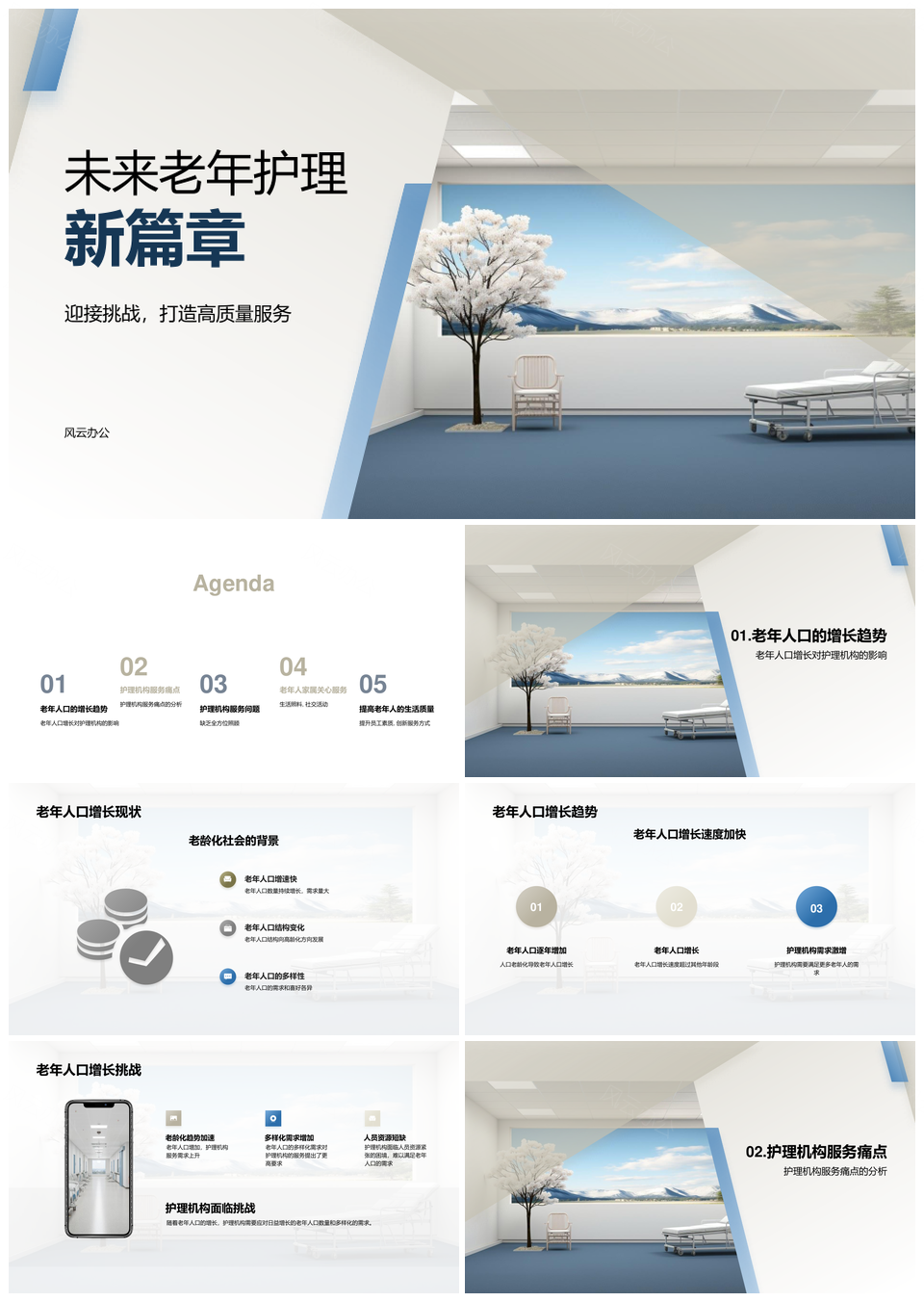 风云办公提供的生物医疗提升老年护理服务水平PPT模板,下载格式为pptx,一共23页,作品中文字及图均可以修改和编辑,图片更改请在作品中右键图片并更换,文字修改请直接点击文字进行修改。
