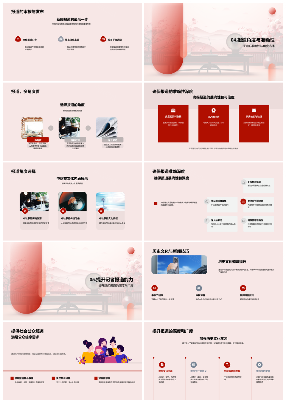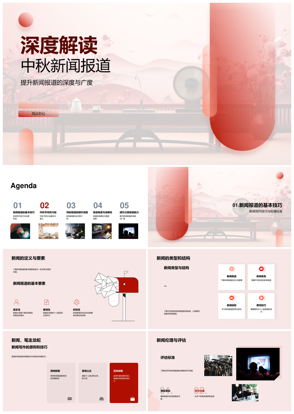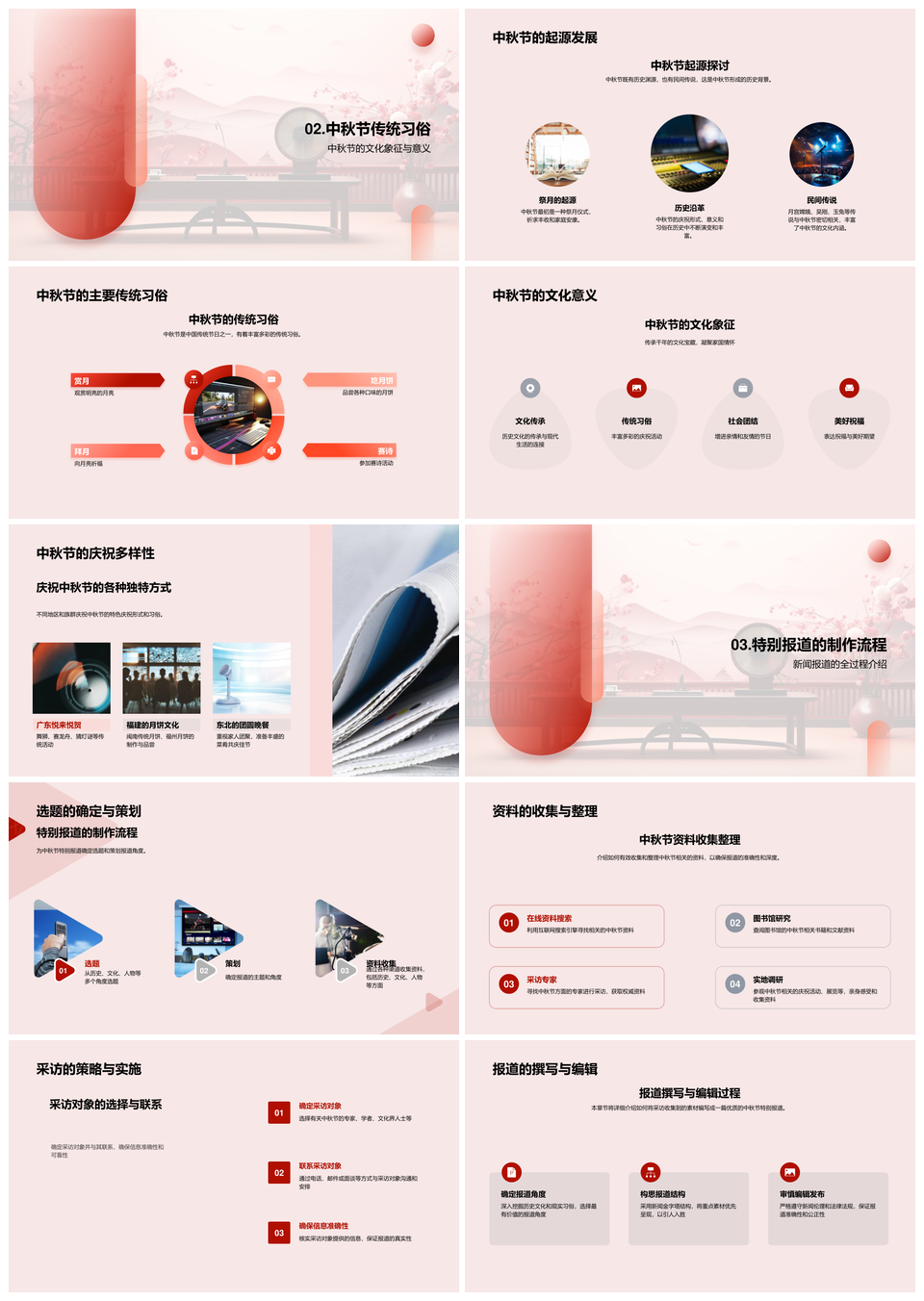 中秋新闻报道要素结构采编策略与月饼解析PPT模板推荐