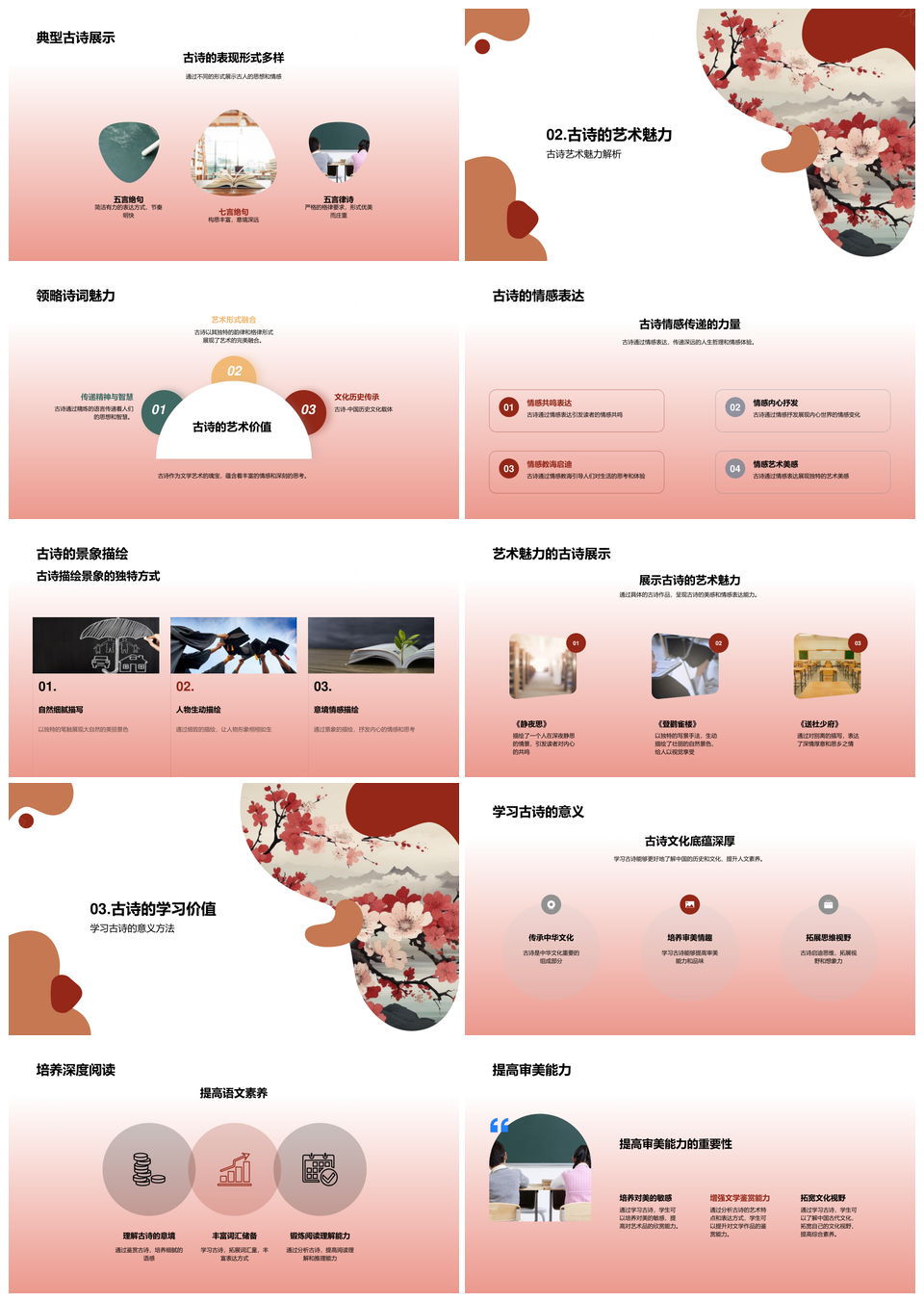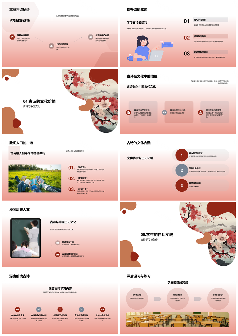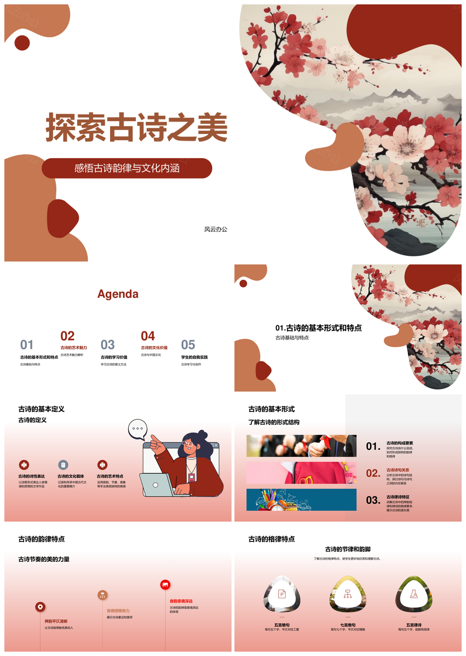 风云办公提供的古诗韵律文化情感艺术教学卷轴探微PPT模板,下载格式为pptx,一共30页,作品中文字及图均可以修改和编辑,图片更改请在作品中右键图片并更换,文字修改请直接点击文字进行修改。