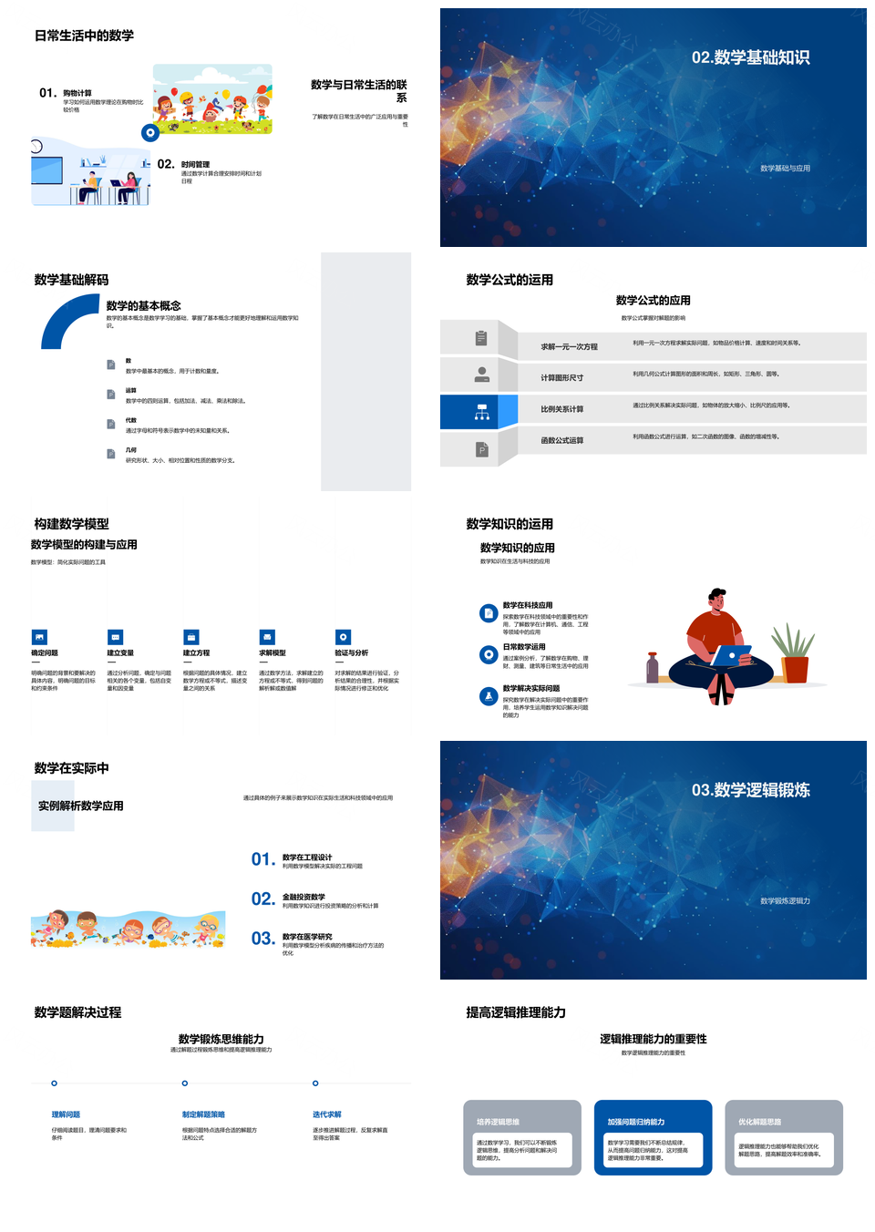 初中数学知识理解实际应用与公式运用教学PPT模板推荐