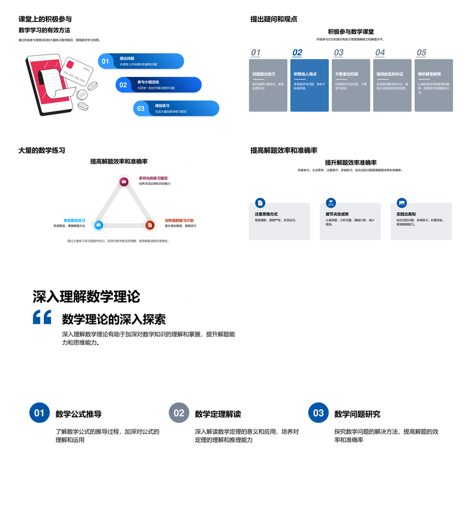 这是一张初中数学知识理解实际应用与公式运用教学PPT模板,包含初中数学、知识理解、实际应用、公式运用、教学等主题内容,也可用作初中数学知识理解实际应用、数学知识理解实际应用、知识理解实际应用公式、实际应用公式运用教学、初中数学知识理解、数学知识理解实际、知识理解实际应用、实际应用公式运用、应用公式运用教学、初中数学知识、数学知识理解、知识理解实际、实际应用公式、应用公式运用、公式运用教学等PPT场景使用。 风云办公提供的初中数学知识理解实际应用与公式运用教学PPT模板,下载格式为pptx,一共33页,作品中文字及图均可以修改和编辑,图片更改请在作品中右键图片并更换,文字修改请直接点击文字进行修改。