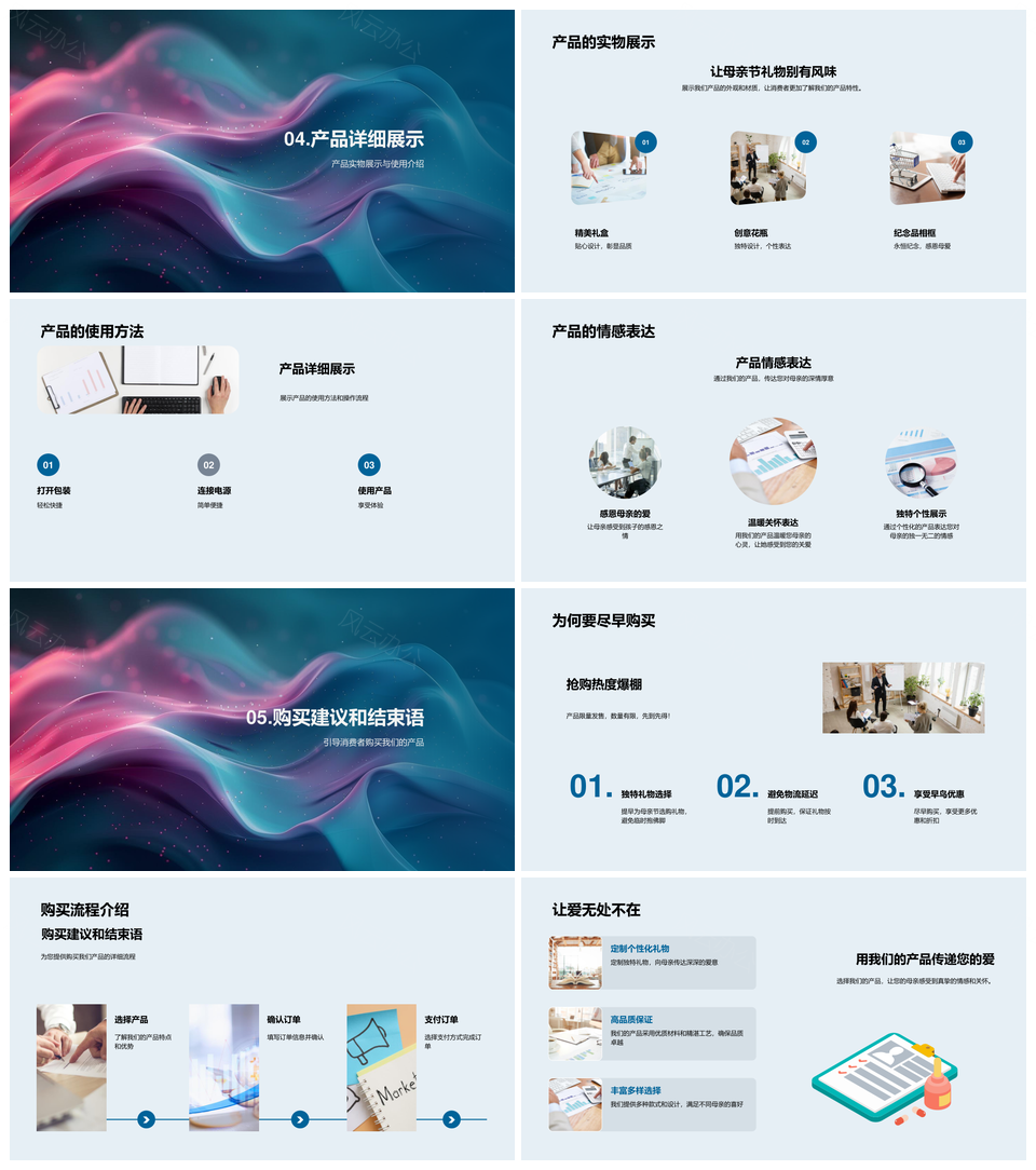 这是一张母亲节礼物消费需求与产品特性推广解析PPT模板,包含母亲节礼物、消费需求、产品特性、推广解析等主题内容,也可用作母亲节礼物消费需求产品特性、母亲节礼物消费需求推广、母亲节礼物产品特性推广、母亲节消费需求产品特性、礼物消费需求产品特性推广、消费需求产品特性推广解析、母亲节礼物产品特性、母亲节礼物推广解析、母亲节消费需求推广、礼物消费需求推广、产品特性推广解析、母亲节礼物消费需求、消费需求产品特性、产品特性推广、推广解析等PPT场景使用。 风云办公提供的母亲节礼物消费需求与产品特性推广解析PPT模板,下载格式为pptx,一共26页,作品中文字及图均可以修改和编辑,图片更改请在作品中右键图片并更换,文字修改请直接点击文字进行修改。