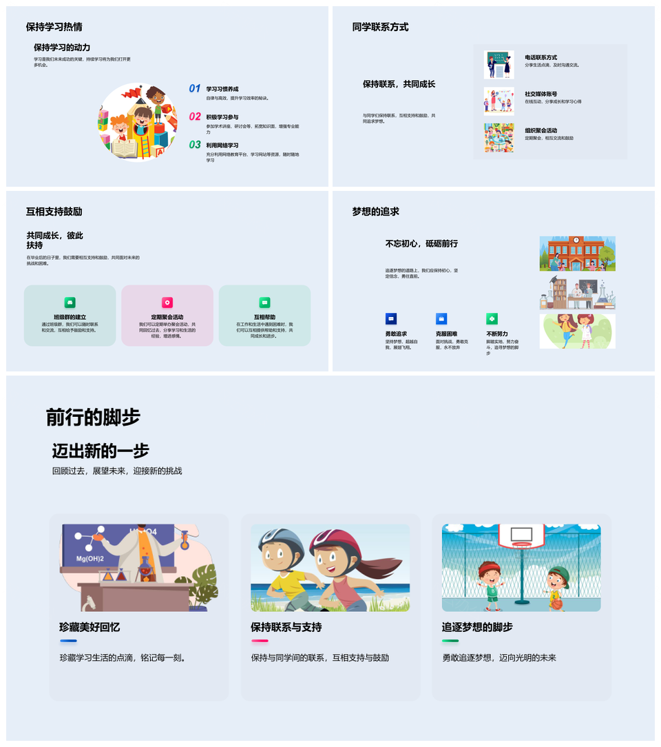 毕业感言班级历程成长成就特色活动未来挑战PPT模板推荐