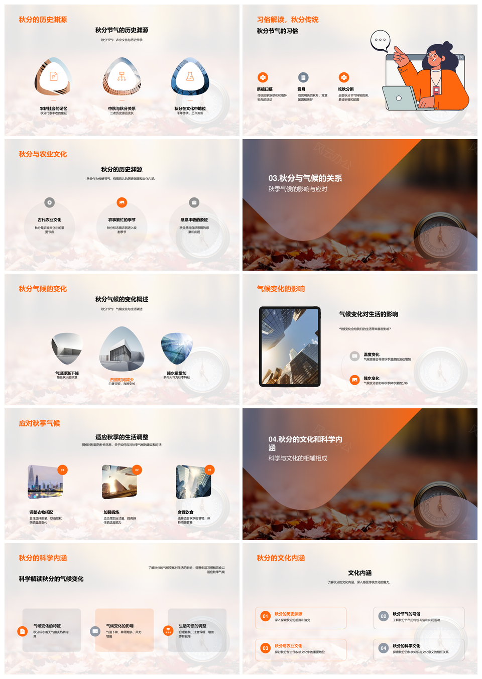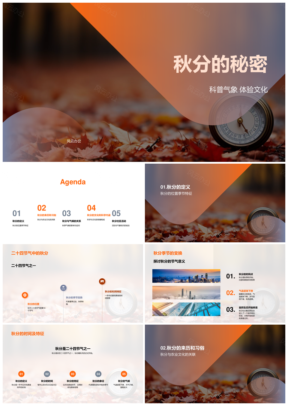 风云办公提供的秋分节气气象农时与季节变迁PPT模板,下载格式为pptx,一共23页,作品中文字及图均可以修改和编辑,图片更改请在作品中右键图片并更换,文字修改请直接点击文字进行修改。