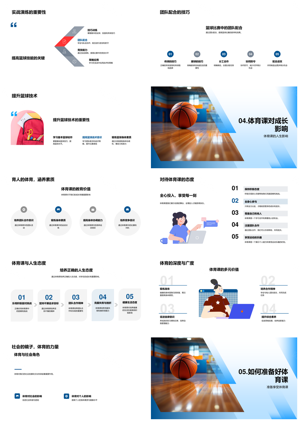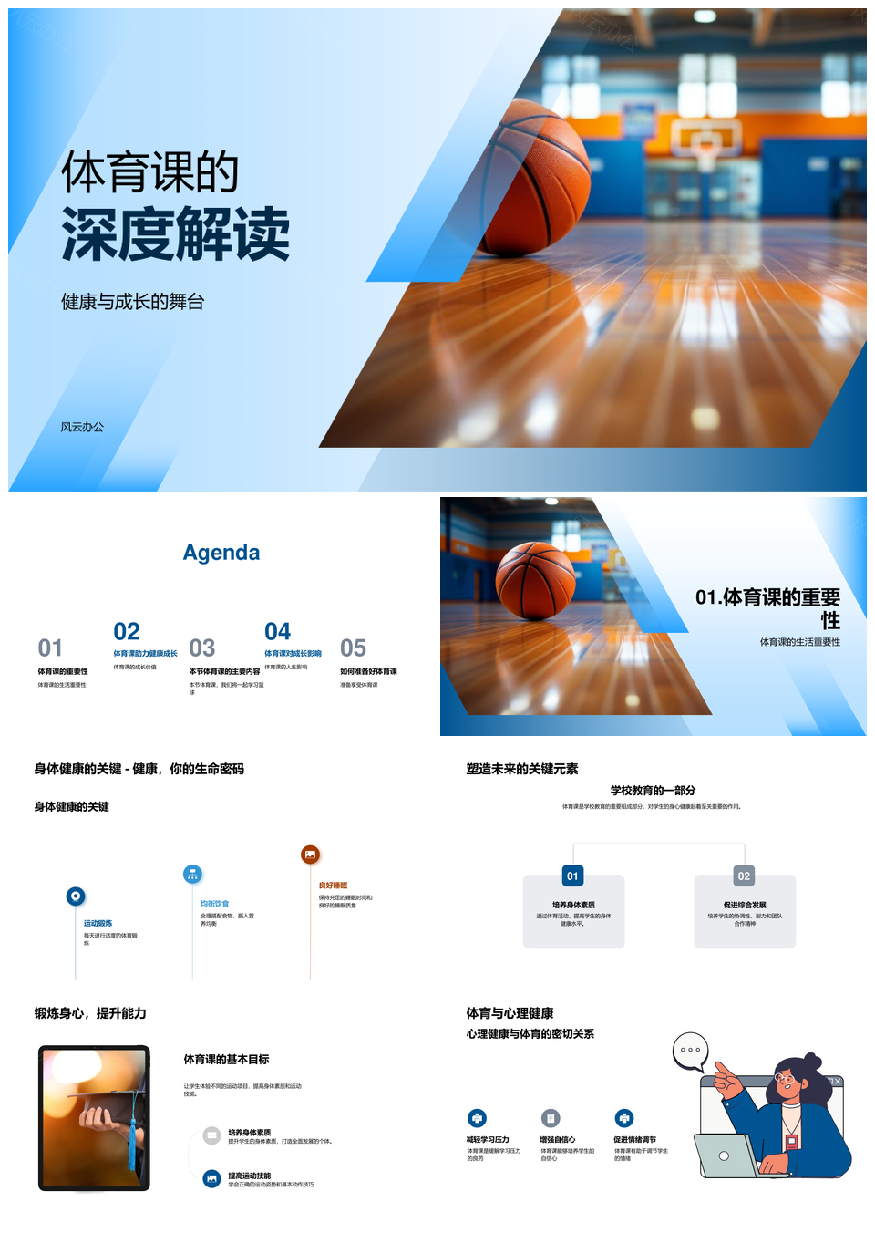 风云办公提供的体育课篮球运动助力健康团队精神成长PPT模板,下载格式为pptx,一共33页,作品中文字及图均可以修改和编辑,图片更改请在作品中右键图片并更换,文字修改请直接点击文字进行修改。