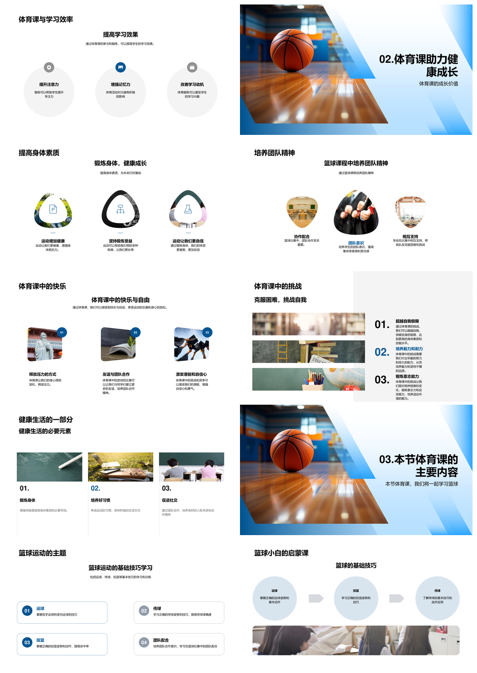 这是一张体育课篮球运动助力健康团队精神成长PPT模板,包含体育课、篮球运动、助力、健康、团队精神、成长等主题内容,也可用作体育课篮球运动助力健康、体育课篮球运动助力健康团队精神、体育课篮球运动健康团队精神成长、篮球运动助力健康团队精神、篮球运动助力健康团队精神成长、运动助力健康团队精神成长、体育课助力健康团队精神、助力健康团队精神成长、体育课篮球运动健康团队、运动健康团队精神成长、健康团队精神成长体育课、体育课篮球助力健康、篮球运动健康团队精神、体育课团队精神成长、健康团队精神成长等PPT场景使用。