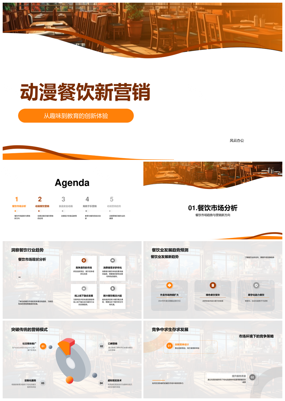 风云办公提供的动漫餐饮创新体验营销趋势分析PPT模板,下载格式为pptx,一共28页,作品中文字及图均可以修改和编辑,图片更改请在作品中右键图片并更换,文字修改请直接点击文字进行修改。