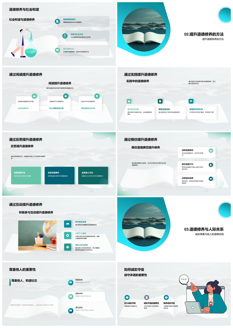 风云办公提供的道德教育课程阅行育习塑美人生PPT模板,下载格式为pptx,一共33页,作品中文字及图均可以修改和编辑,图片更改请在作品中右键图片并更换,文字修改请直接点击文字进行修改。