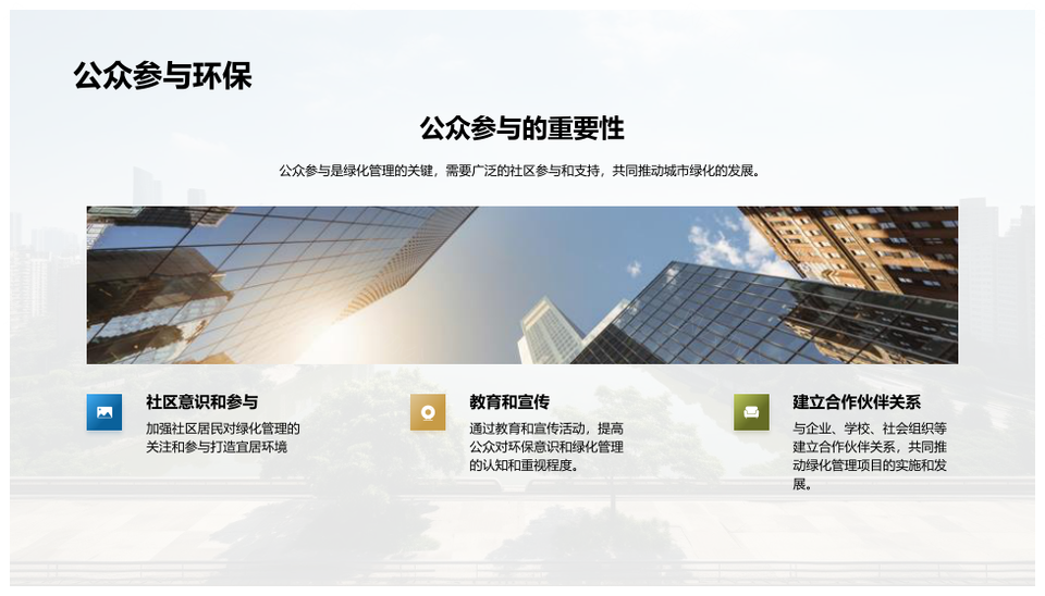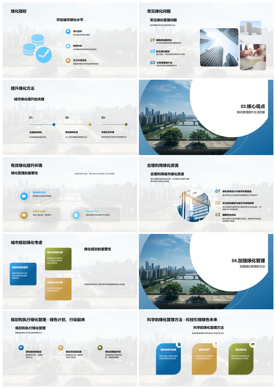 风云办公提供的绿色城市规划师研讨绿化管理案例挑战PPT模板,下载格式为pptx,一共19页,作品中文字及图均可以修改和编辑,图片更改请在作品中右键图片并更换,文字修改请直接点击文字进行修改。