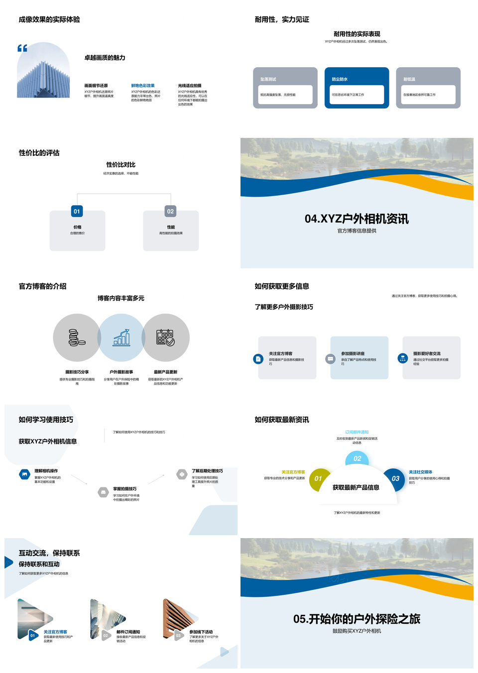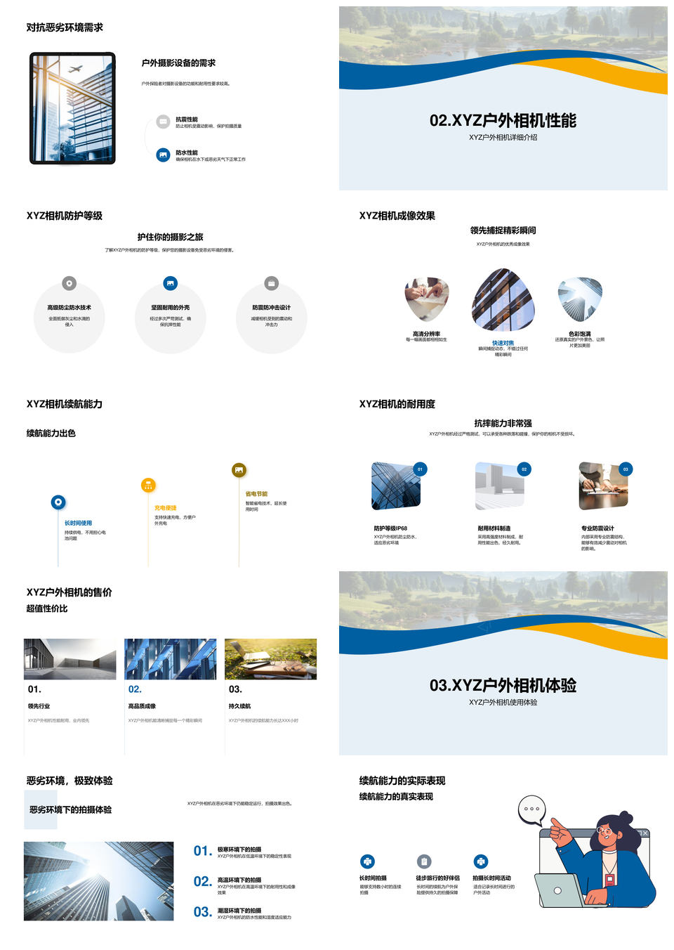 XYZ户外相机户外摄影防护成像续航耐用售价性价比PPT模板推荐
