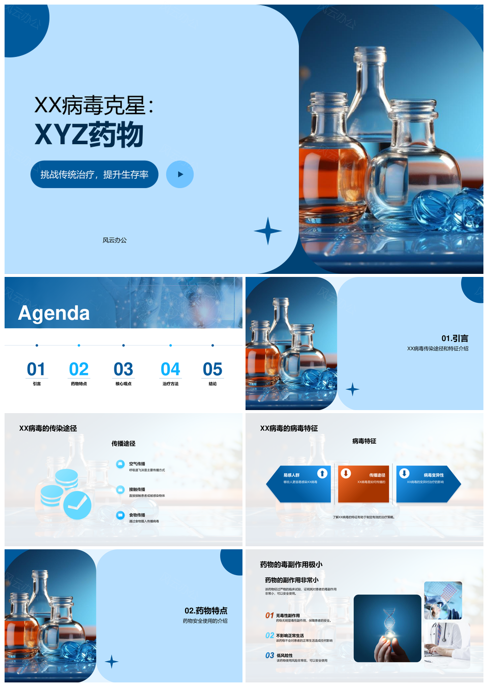 XYZ药物治疗XX病毒特征及传染研究PPT模板推荐