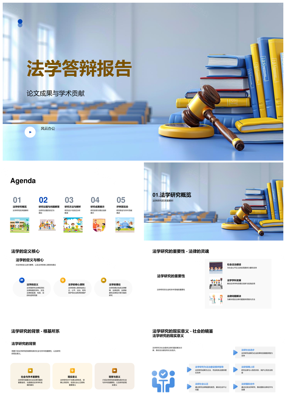 风云办公提供的法学答辩报告学术贡献与答辩攻略PPT模板,下载格式为pptx,一共28页,作品中文字及图均可以修改和编辑,图片更改请在作品中右键图片并更换,文字修改请直接点击文字进行修改。