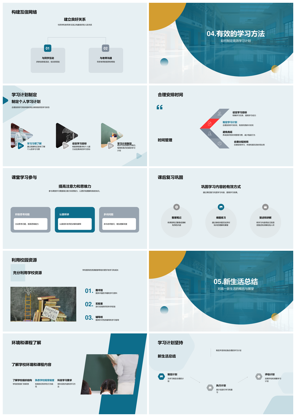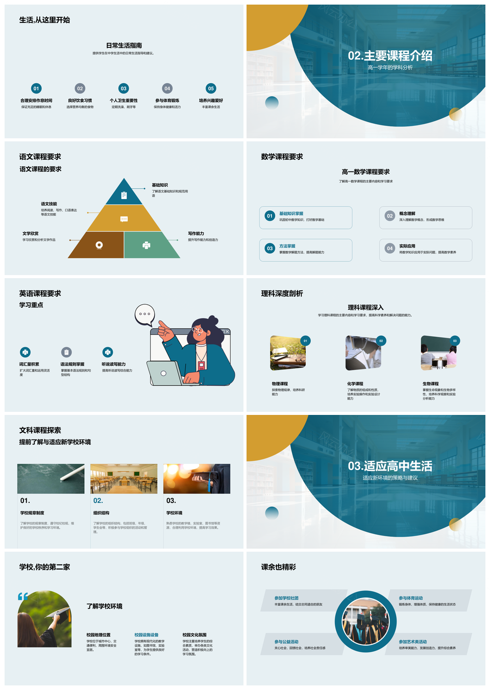 高一新生适应指南学业规划校园社团高效学习PPT模板推荐