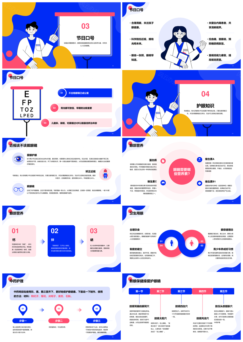 蓝黄红卡通爱眼日科普PPT模板推荐