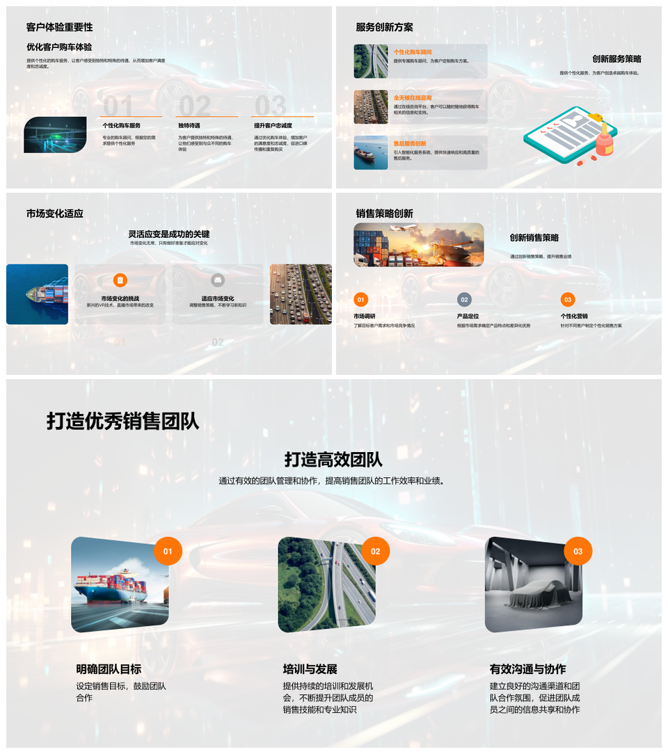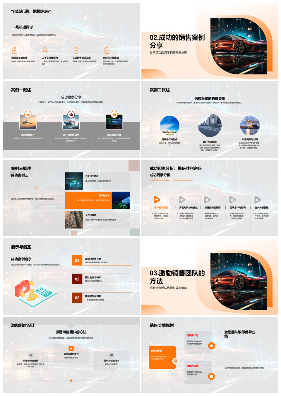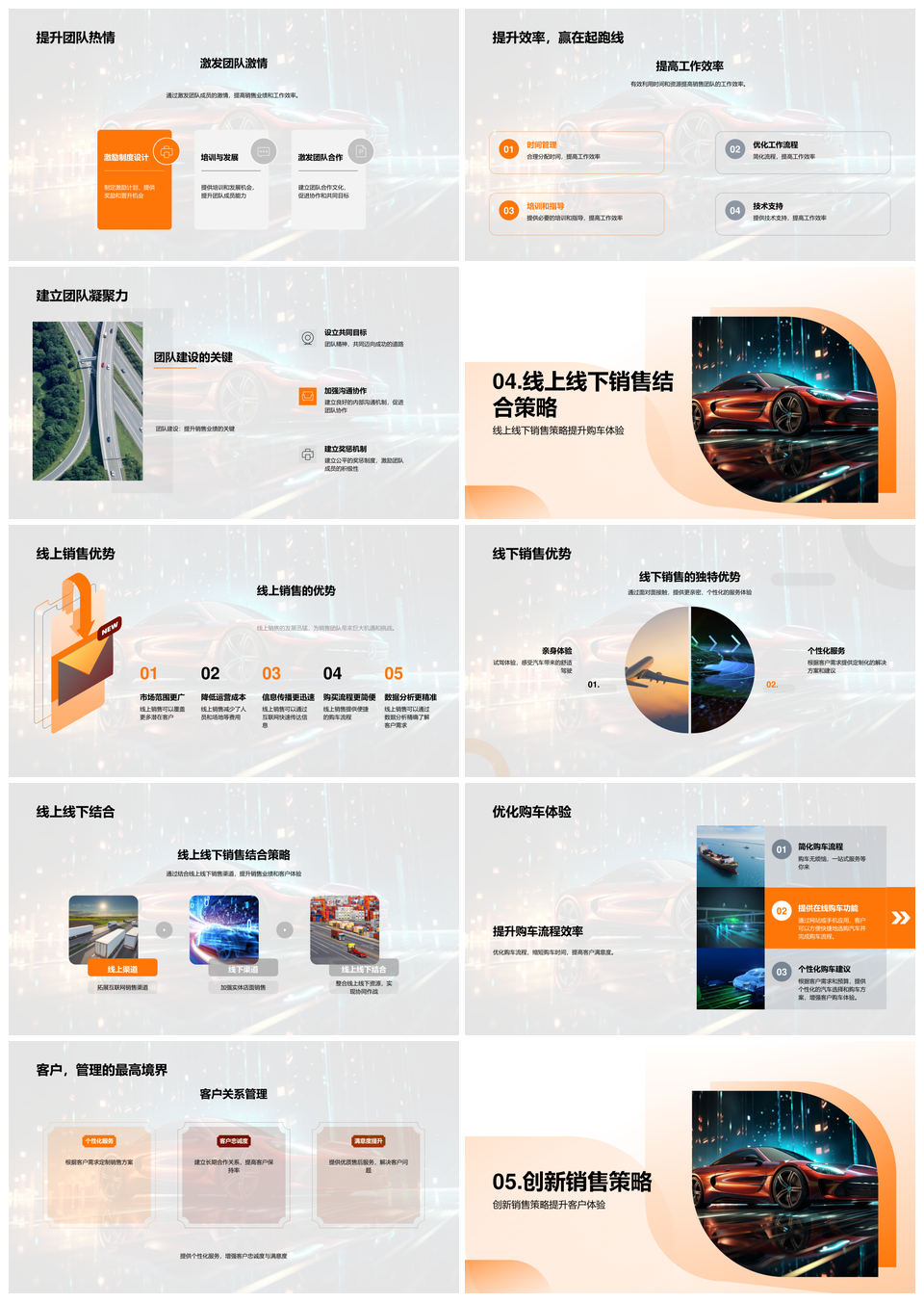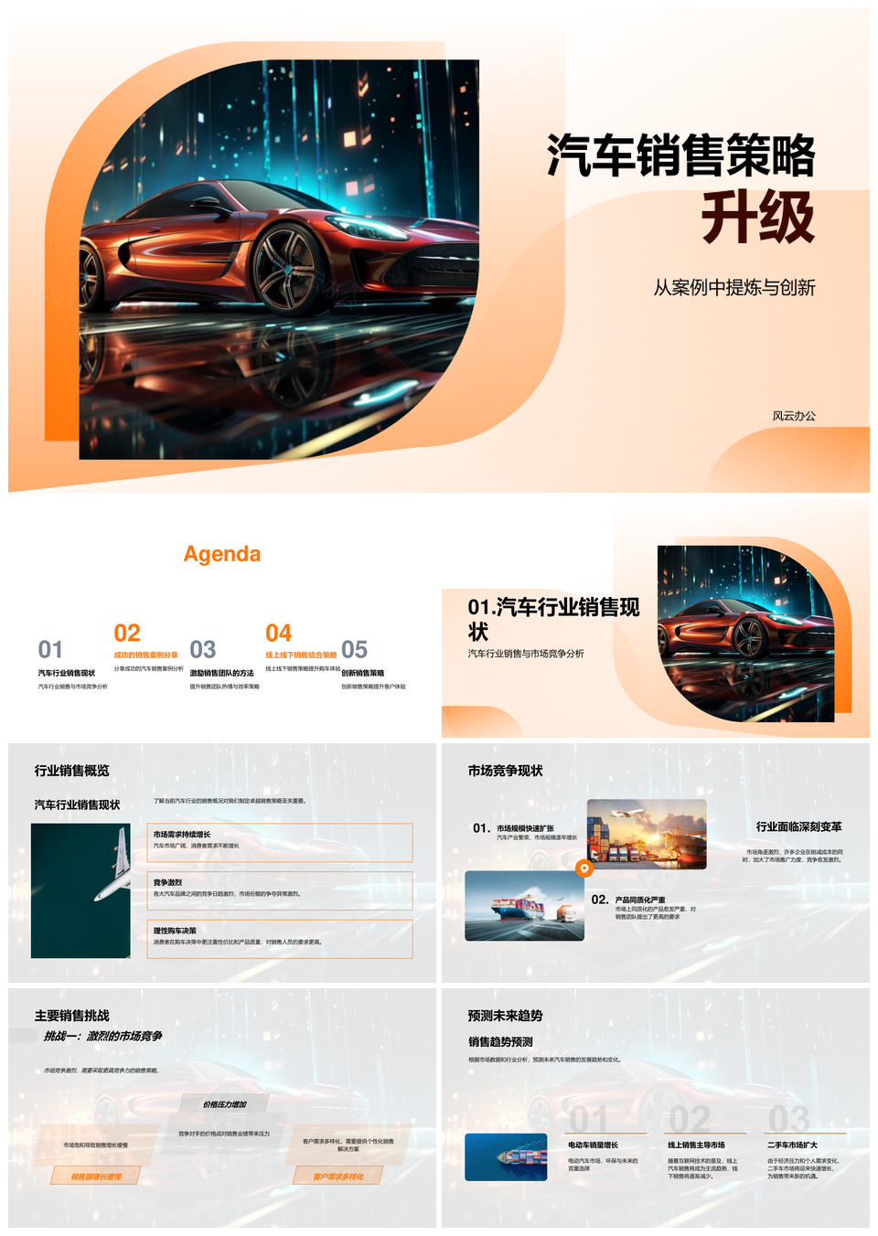 这是一张汽车销售策略升级赛车激励团队效率竞争挑战PPT模板,包含汽车销售策略、升级、赛车、激励、团队、效率、竞争、挑战等主题内容,也可用作汽车销售策略升级、销售策略升级赛车、策略升级赛车激励、升级赛车激励团队、赛车激励团队效率、激励团队效率竞争、团队效率竞争挑战、汽车销售策略、销售策略升级、策略升级赛车、升级赛车激励、赛车激励团队、激励团队效率、团队效率竞争、效率竞争挑战等PPT场景使用。 风云办公提供的汽车销售策略升级赛车激励团队效率竞争挑战PPT模板,下载格式为pptx,一共33页,作品中文字及图均可以修改和编辑,图片更改请在作品中右键图片并更换,文字修改请直接点击文字进行修改。