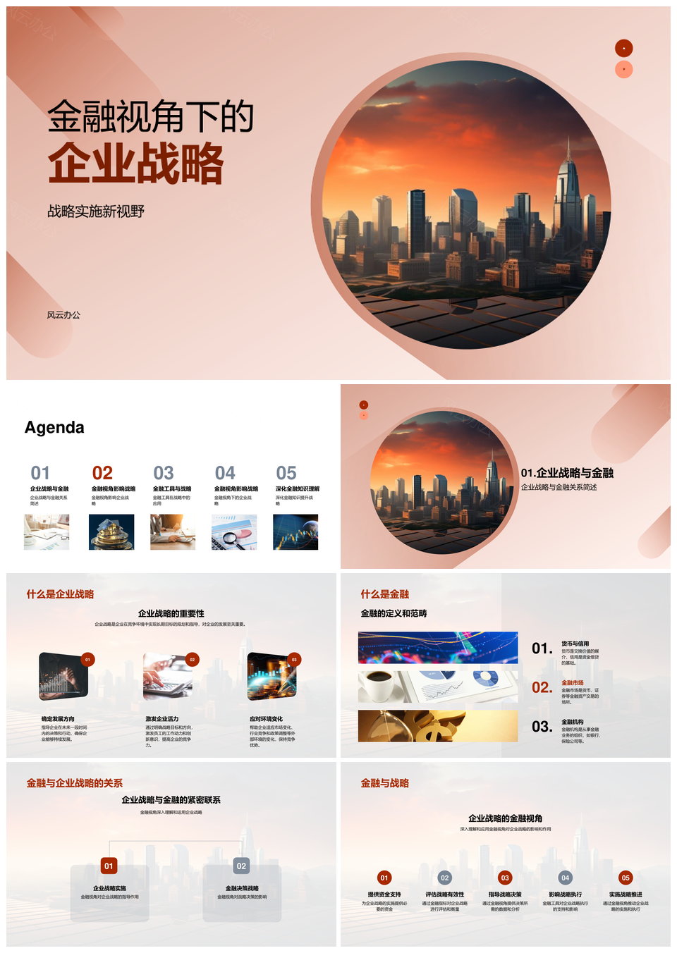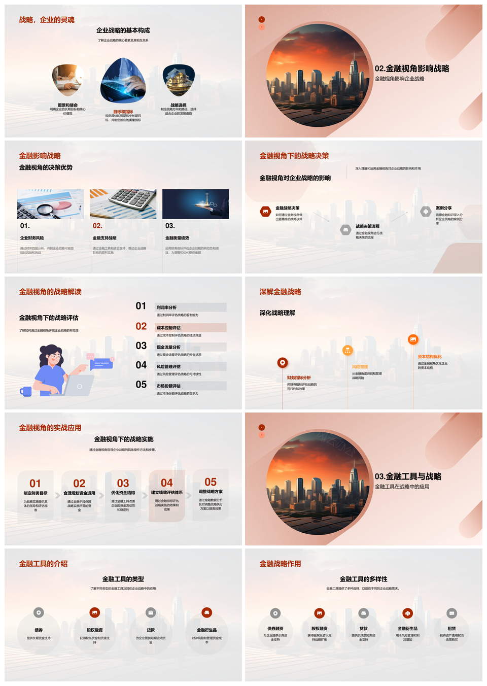 风云办公提供的金融视角企业战略决策工具实施PPT模板,下载格式为pptx,一共33页,作品中文字及图均可以修改和编辑,图片更改请在作品中右键图片并更换,文字修改请直接点击文字进行修改。