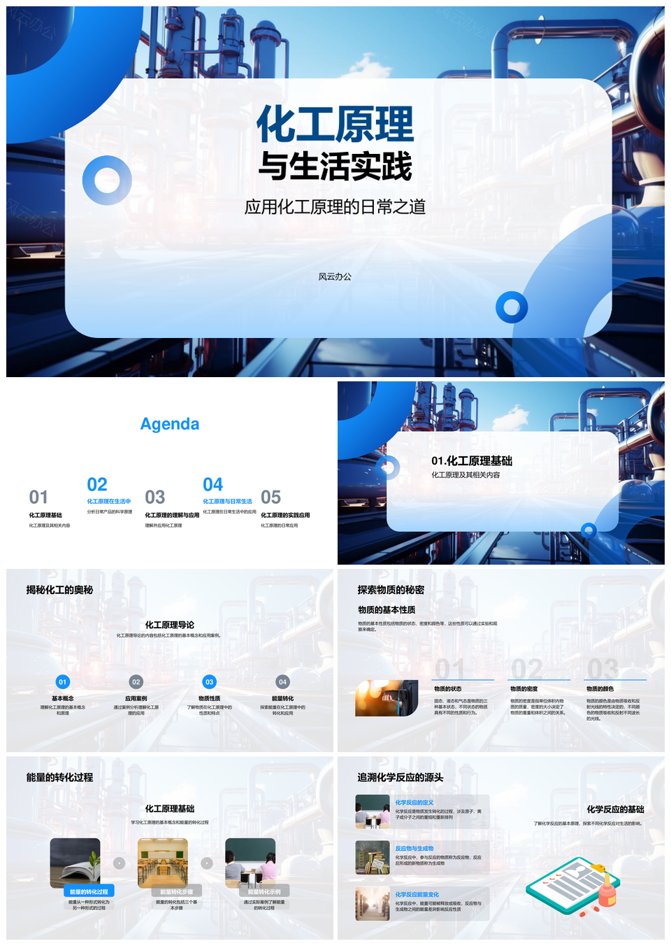 风云办公提供的化工原理与生活实践中物质能量转化PPT模板,下载格式为pptx,一共33页,作品中文字及图均可以修改和编辑,图片更改请在作品中右键图片并更换,文字修改请直接点击文字进行修改。