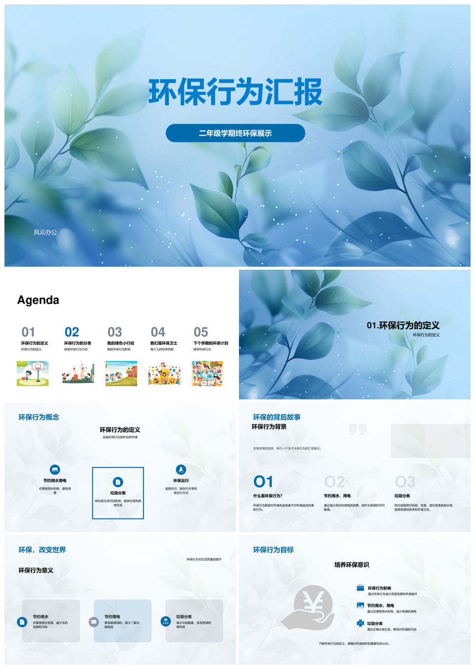 这是一张2025二年级环保行为节水节电分类出行绿色生活汇报PPT模板,包含2025、二年级、环保行为、节水、节电、分类出行、绿色生活、汇报等主题内容,也可用作环保行为节水节电、节水节电分类出行、分类出行绿色生活、节水节电绿色出行、环保节水节电、分类绿色出行、绿色生活节水、节水分类出行、环保分类出行、节水节电、分类出行、绿色生活、环保行为、绿色出行、节水分类等PPT场景使用。 风云办公提供的2025二年级环保行为节水节电分类出行绿色生活汇报PPT模板,下载格式为pptx,一共33页,作品中文字及图均可以修改和编辑,图片更改请在作品中右键图片并更换,文字修改请直接点击文字进行修改。