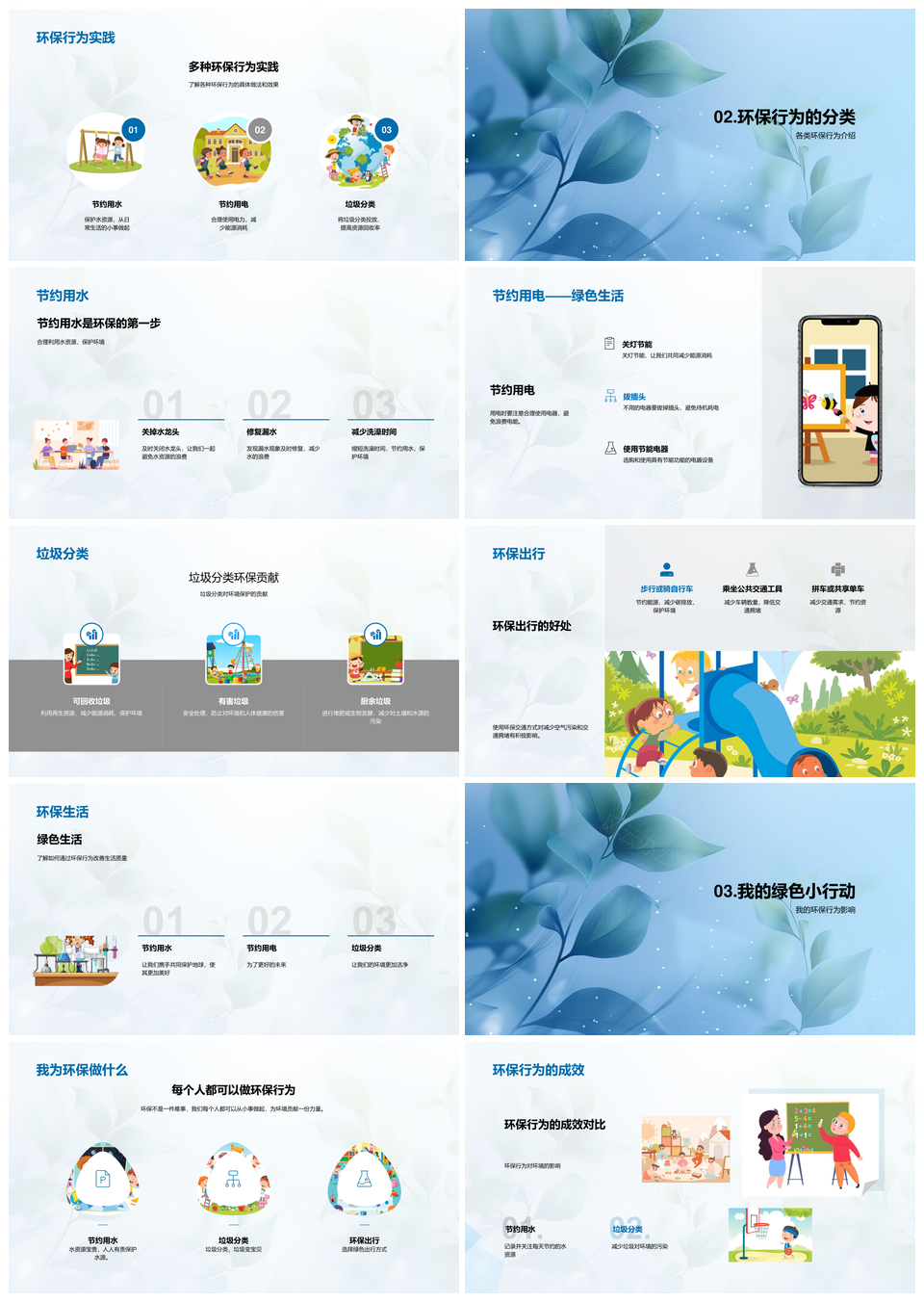 2025二年级环保行为节水节电分类出行绿色生活汇报PPT模板推荐