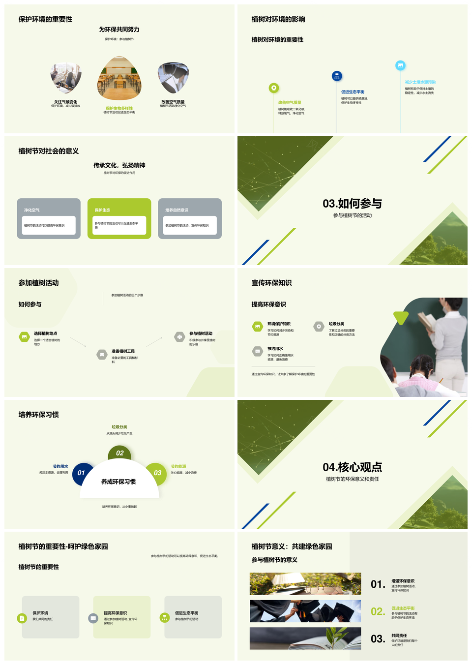 风云办公提供的幼儿园教师植树节活动倡环保护生态PPT模板,下载格式为pptx,一共23页,作品中文字及图均可以修改和编辑,图片更改请在作品中右键图片并更换,文字修改请直接点击文字进行修改。
