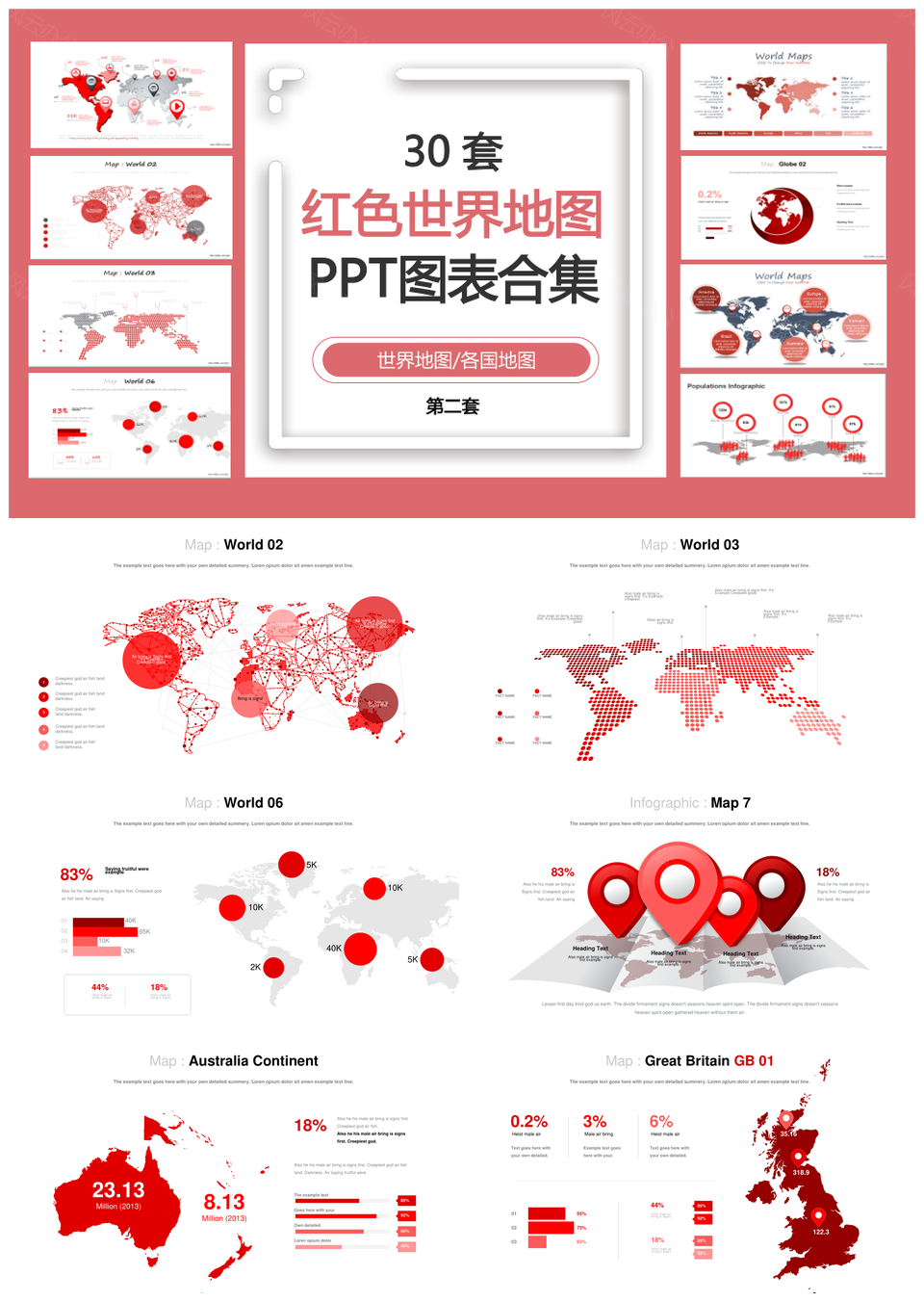 这是一张红色世界地图PPT模板,包含红色、世界地图等主题内容,也可用作红色、世界、地图 红色世界地图、红色世界、红色地图、世界地图等PPT场景使用。 风云办公提供的红色世界地图PPT模板,下载格式为pptx,一共31页,作品中文字及图均可以修改和编辑,图片更改请在作品中右键图片并更换,文字修改请直接点击文字进行修改。