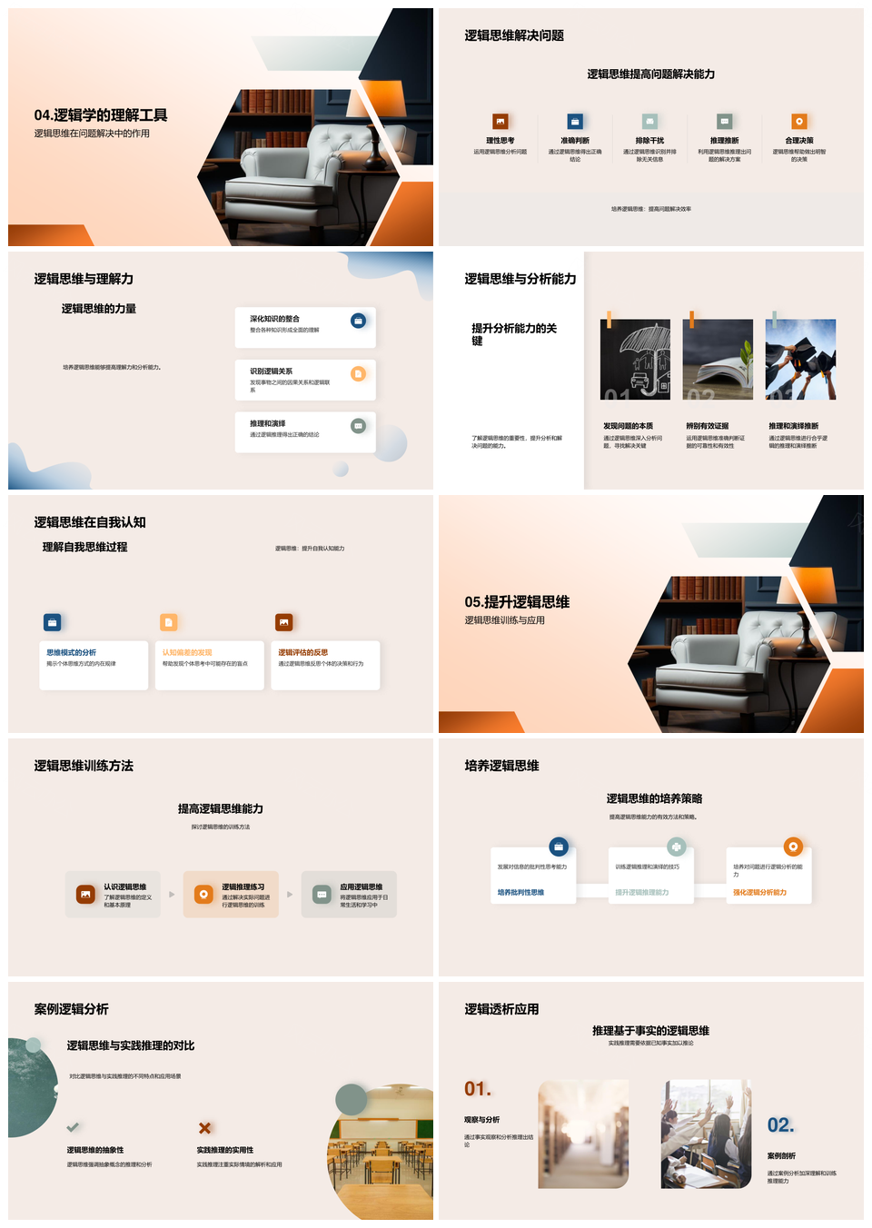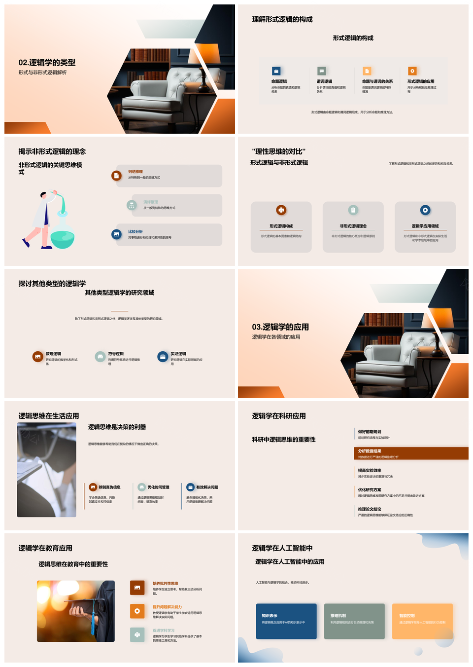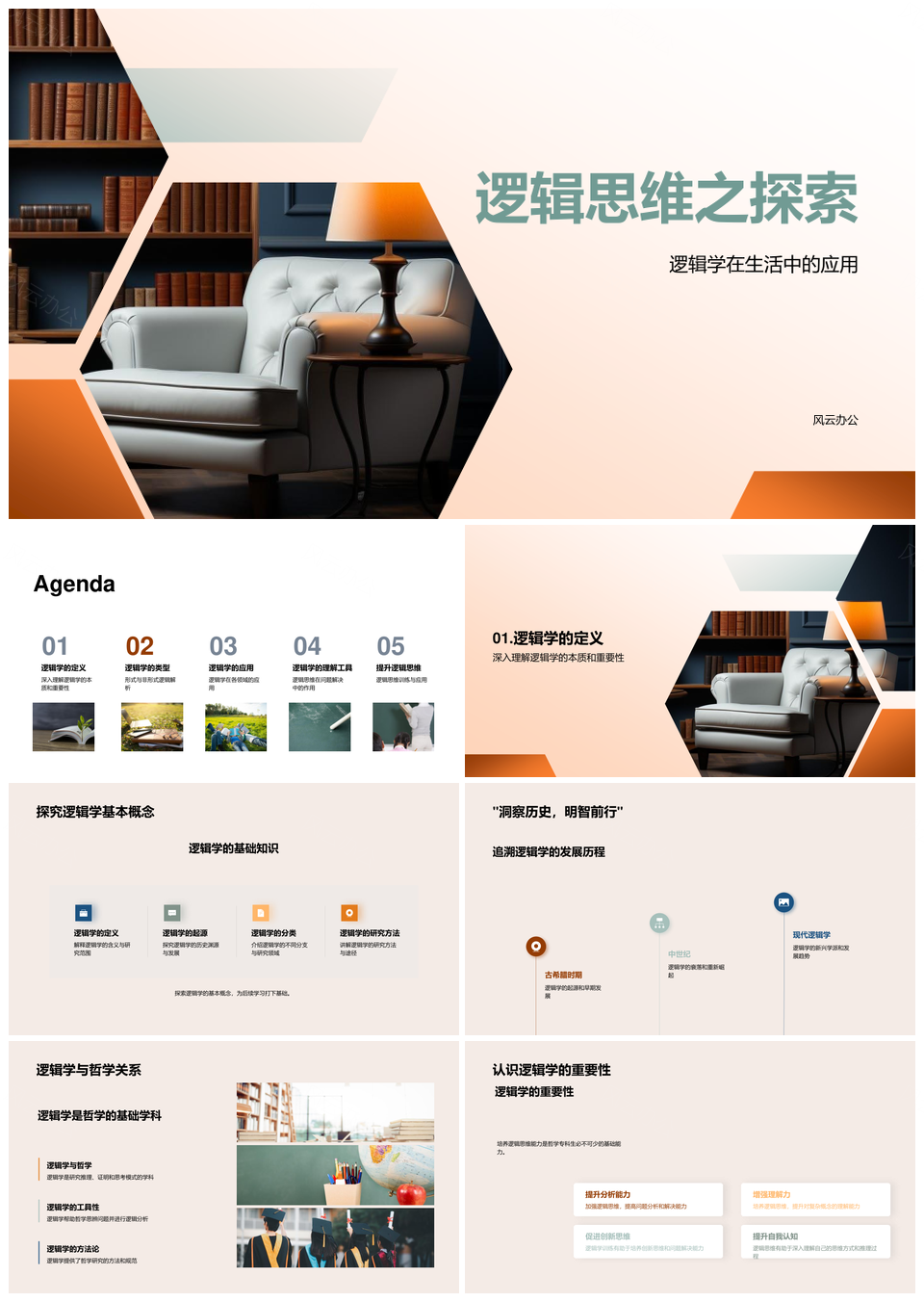 逻辑思维逻辑学科研教育AI哲学谜题探析PPT模板推荐