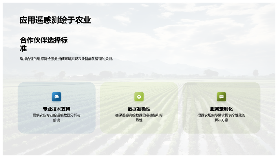 这是一张农业智能化遥感测绘助力农田管理PPT模板,包含农业智能化、遥感测绘、农田管理等主题内容,也可用作农业智能化遥感测绘助力农田、农业智能化遥感测绘、智能化遥感测绘助力、遥感测绘助力农田、测绘助力农田管理、农业智能化助力管理、农业智能化遥感、智能化遥感测绘、遥感测绘助力、助力农田管理、农业智能化、智能化遥感、遥感测绘、农田管理、农业遥感管理等PPT场景使用。