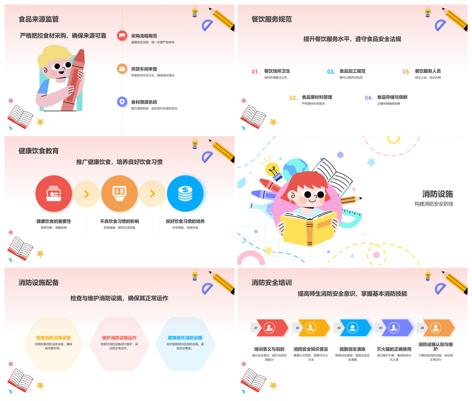 红色可爱卡通商务风总结教育教学课件培训校园PPT模板