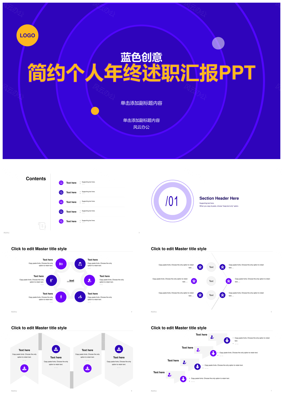蓝色简约商务年终总结计划工作报告动态PPT模板