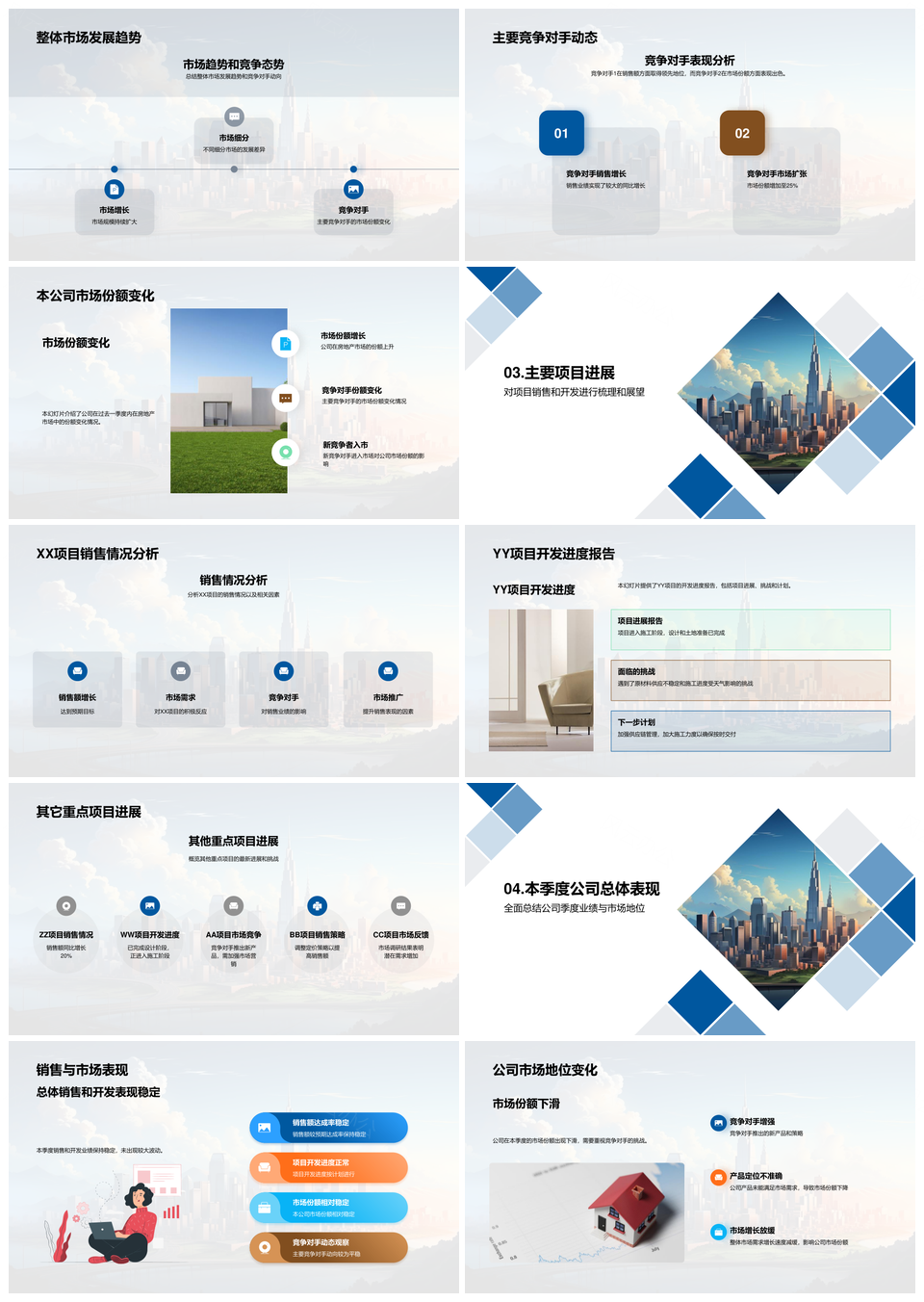 房产业绩市场趋势竞争动态销售份额开发进展PPT模板推荐