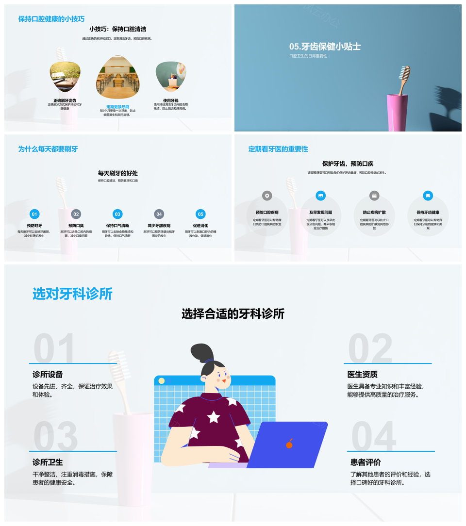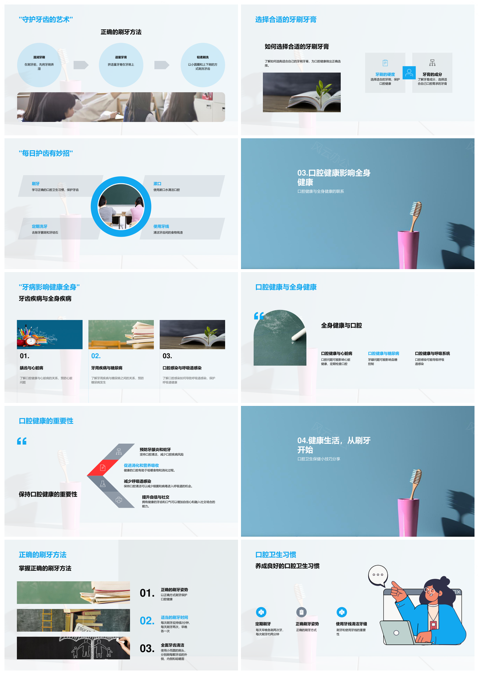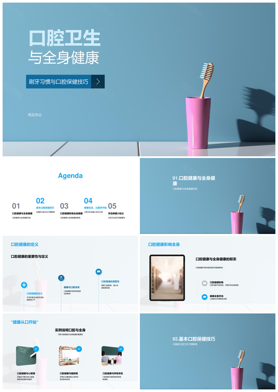 这是一张口腔卫生关联全身健康刷牙习惯保健技巧PPT模板,包含口腔卫生、关联、全身健康、刷牙习惯、保健技巧等主题内容,也可用作口腔卫生关联全身健康刷牙习惯保健技巧、关联全身健康刷牙习惯保健技巧、口腔卫生关联刷牙习惯保健技巧、全身健康刷牙习惯保健技巧、口腔卫生关联全身健康保健技巧、口腔卫生全身健康刷牙习惯保健、口腔卫生保健技巧关联刷牙、关联刷牙习惯保健技巧、全身健康保健技巧、刷牙习惯保健技巧、口腔卫生关联全身健康、全身健康刷牙习惯、口腔卫生保健技巧、保健技巧关联刷牙习惯、刷牙习惯保健等PPT场景使用。 风云办公提供的口腔卫生关联全身健康刷牙习惯保健技巧PPT模板,下载格式为pptx,一共23页,作品中文字及图均可以修改和编辑,图片更改请在作品中右键图片并更换,文字修改请直接点击文字进行修改。