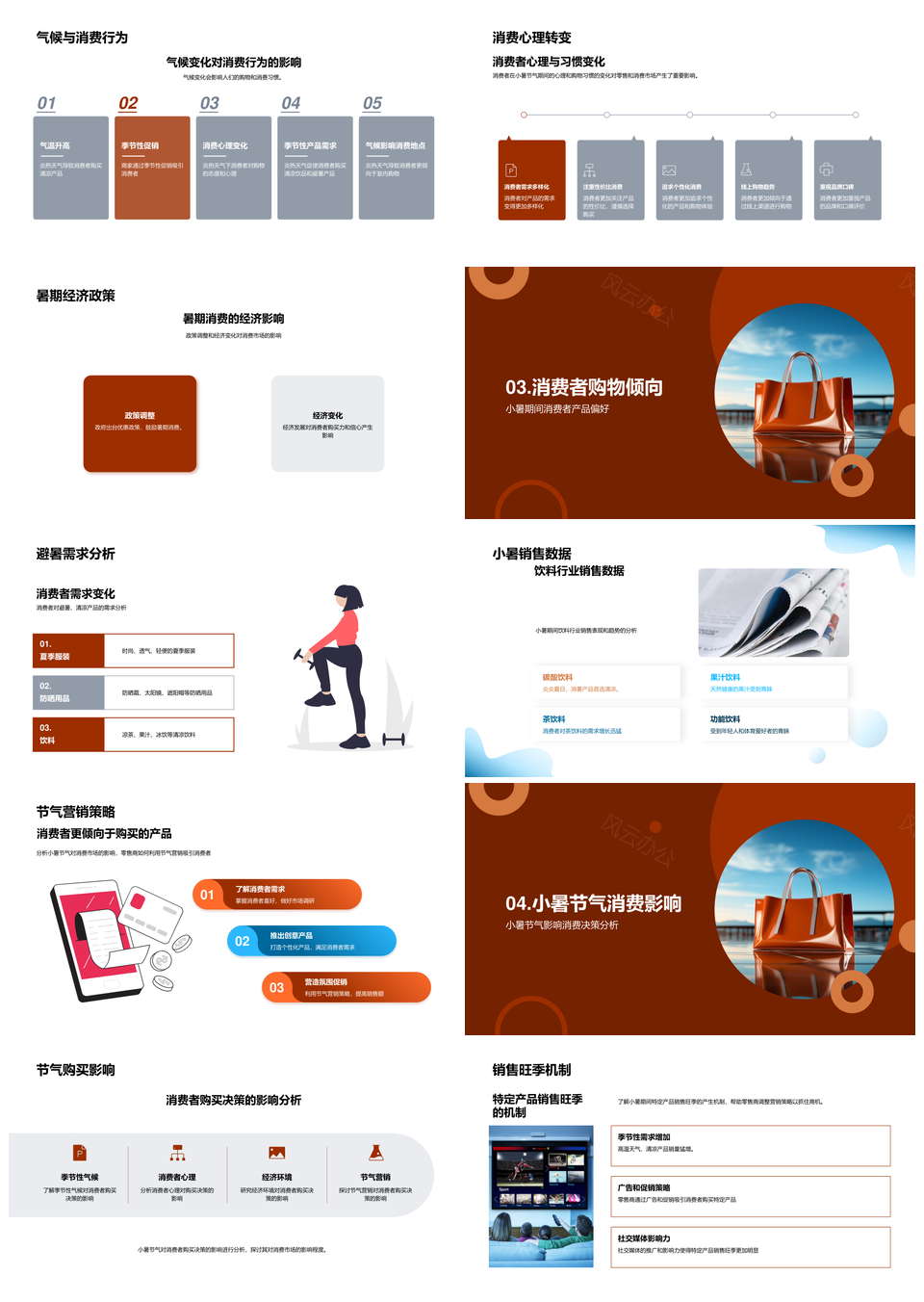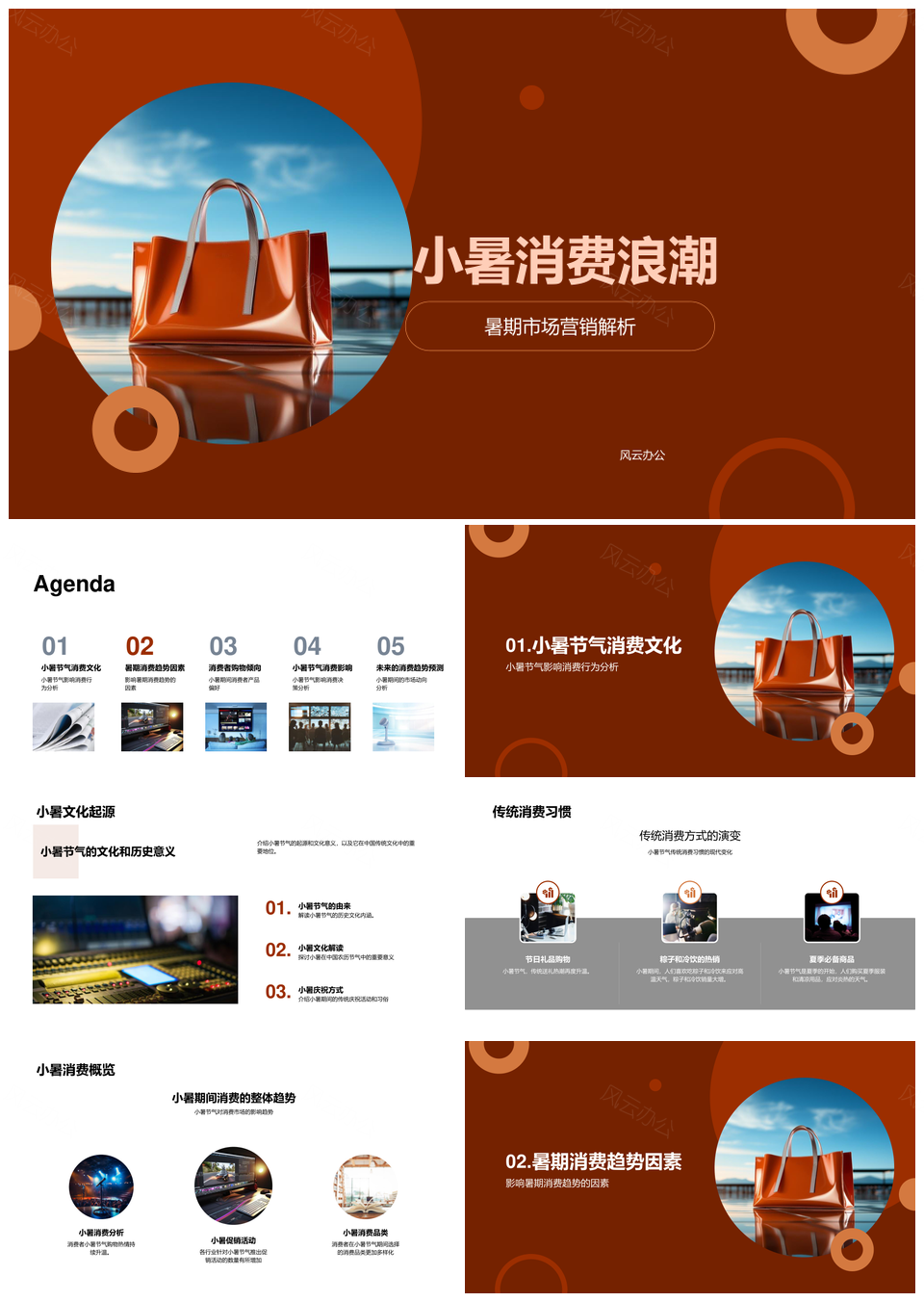 风云办公提供的暑期消费气候心理传统趋势洞察PPT模板,下载格式为pptx,一共23页,作品中文字及图均可以修改和编辑,图片更改请在作品中右键图片并更换,文字修改请直接点击文字进行修改。