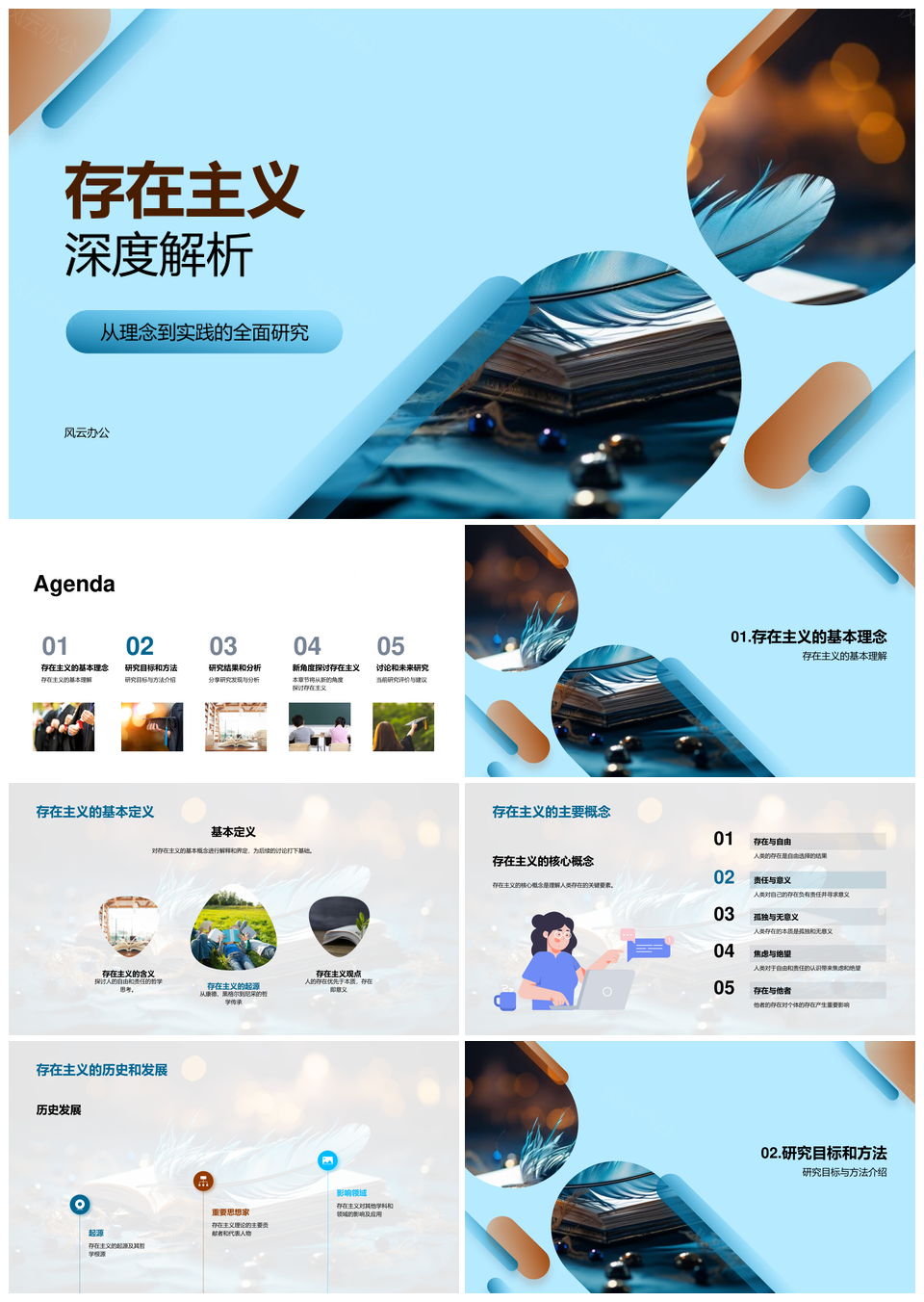 风云办公提供的存在主义研究理念实践历史发展解析PPT模板,下载格式为pptx,一共23页,作品中文字及图均可以修改和编辑,图片更改请在作品中右键图片并更换,文字修改请直接点击文字进行修改。