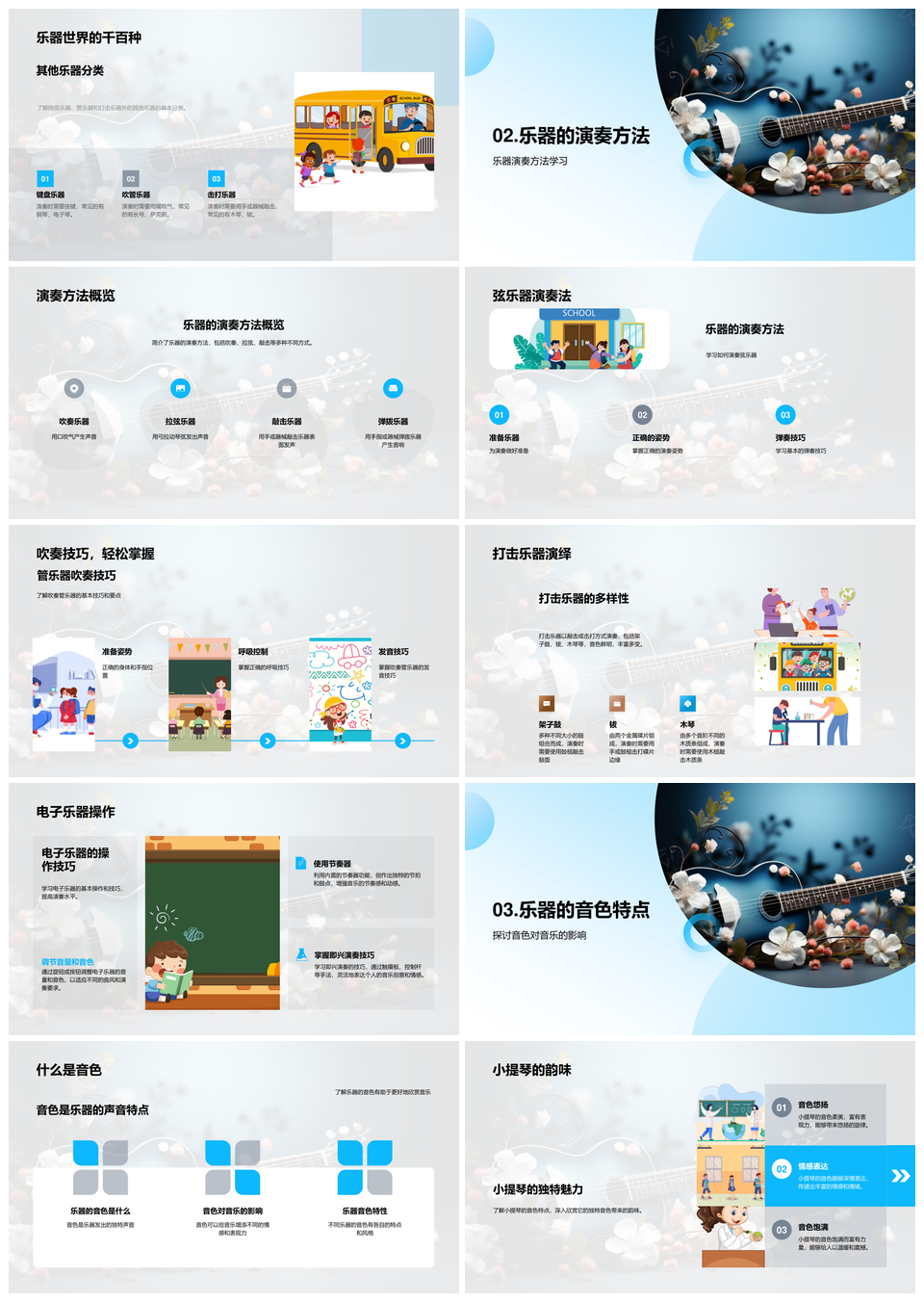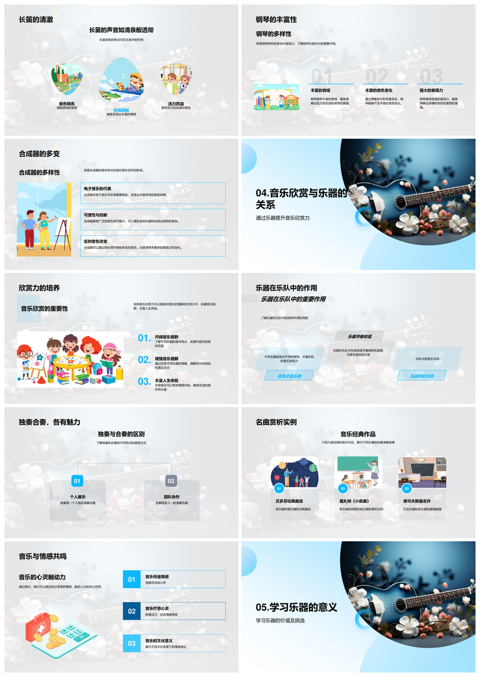 风云办公提供的乐器音色演奏方法学习与音乐欣赏探秘PPT模板,下载格式为pptx,一共33页,作品中文字及图均可以修改和编辑,图片更改请在作品中右键图片并更换,文字修改请直接点击文字进行修改。