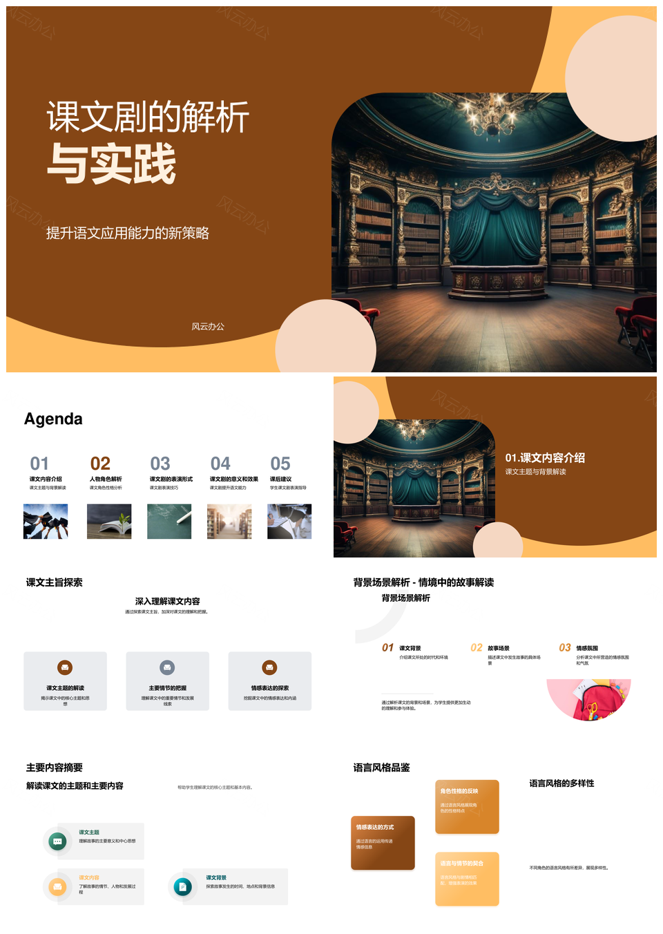 风云办公提供的课文剧解析实践提升语文应用能力PPT模板,下载格式为pptx,一共33页,作品中文字及图均可以修改和编辑,图片更改请在作品中右键图片并更换,文字修改请直接点击文字进行修改。