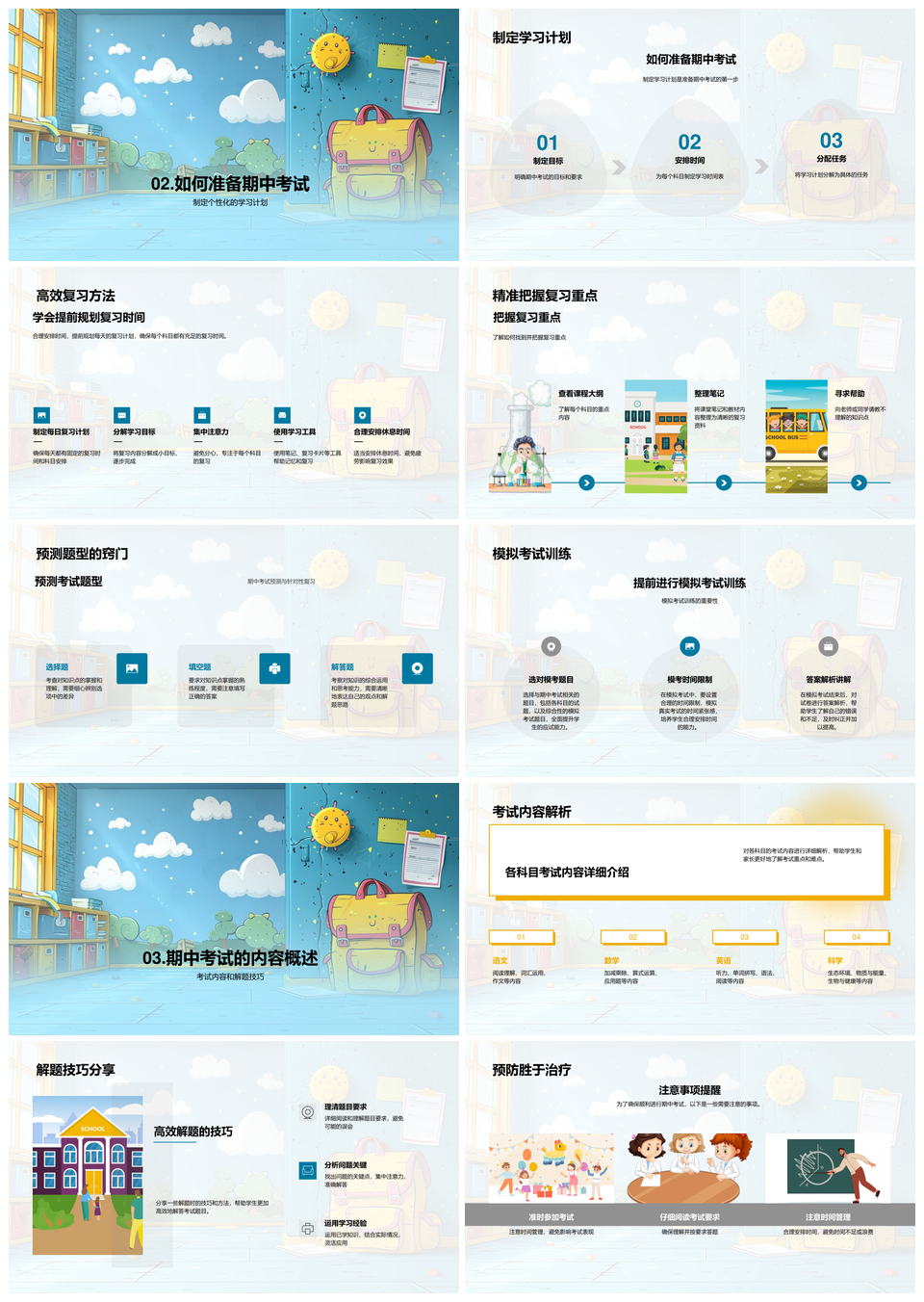 期中复习计划时间管理科目技巧压力运动指南PPT模板推荐