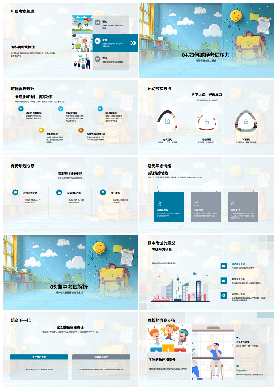 这是一张期中复习计划时间管理科目技巧压力运动指南PPT模板,包含期中复习、计划、时间管理、科目、技巧、压力、运动、指南等主题内容,也可用作期中复习计划时间管理、复习计划时间管理科目、时间管理科目技巧压力、科目技巧压力运动指南、复习计划时间管理指南、时间管理技巧压力运动、期中复习科目技巧压力、计划科目技巧压力运动、科目压力运动指南期中、复习技巧压力运动指南、时间管理科目技巧、科目技巧压力运动、技巧压力运动指南、期中复习计划、压力运动指南等PPT场景使用。 风云办公提供的期中复习计划时间管理科目技巧压力运动指南PPT模板,下载格式为pptx,一共29页,作品中文字及图均可以修改和编辑,图片更改请在作品中右键图片并更换,文字修改请直接点击文字进行修改。