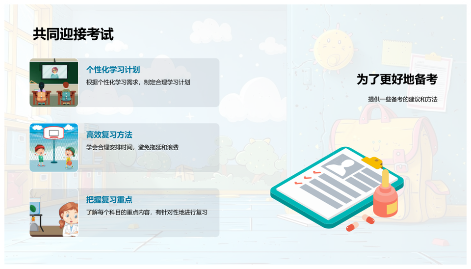 考试复习策略答题技巧记忆科目重点时间管理心态家长试卷PPT模板