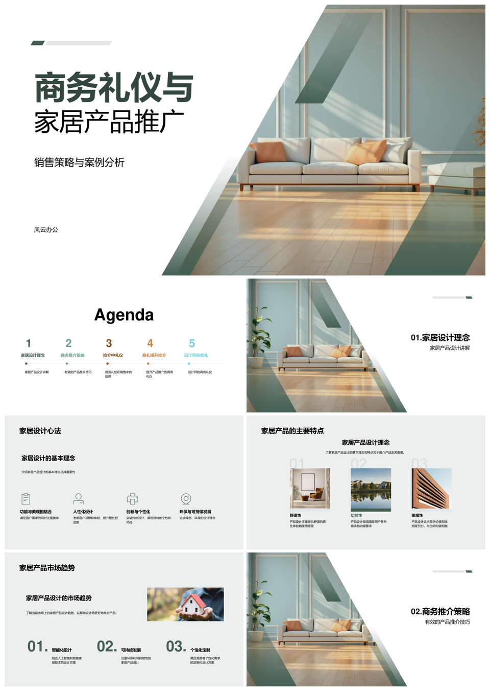 商务礼仪家居设计销售策略趋势案例分析PPT模板推荐