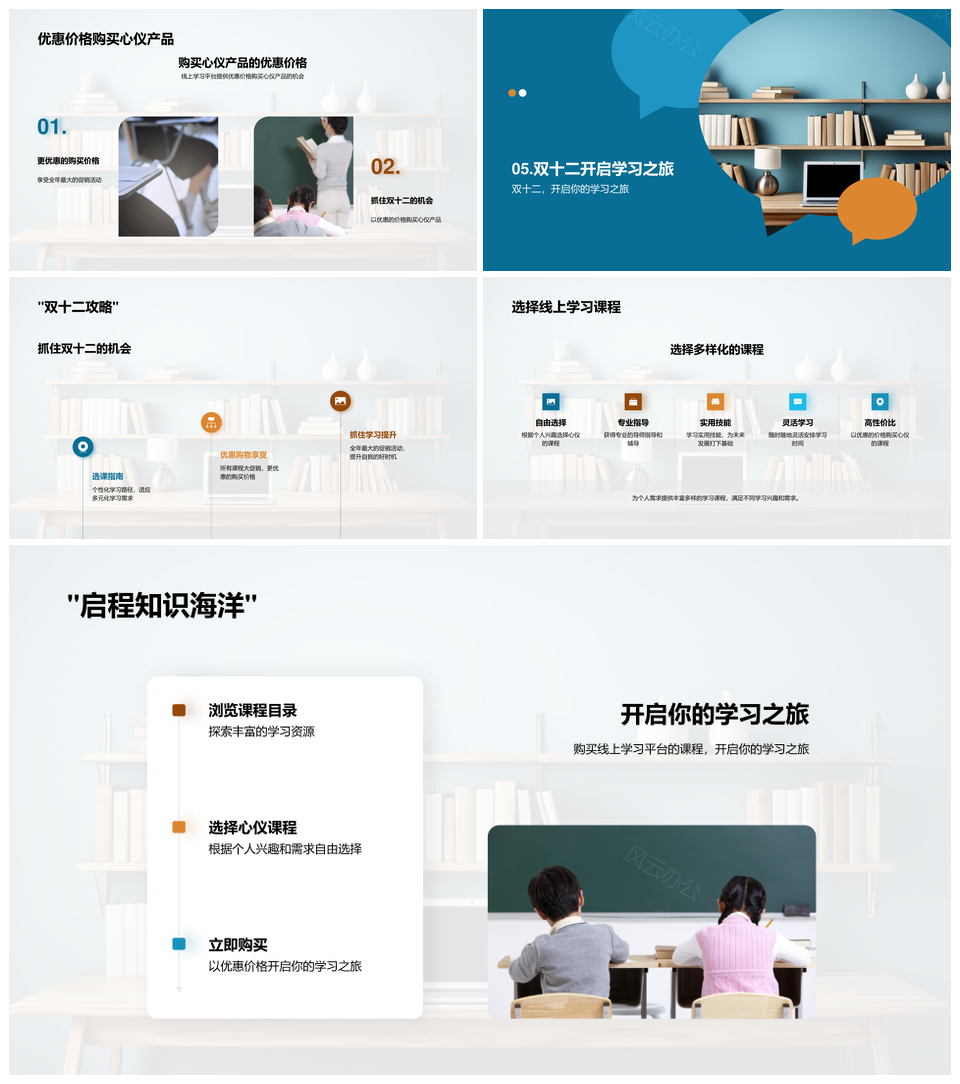 双十二学无止境在线学习灵活高效优质方案PPT模板推荐