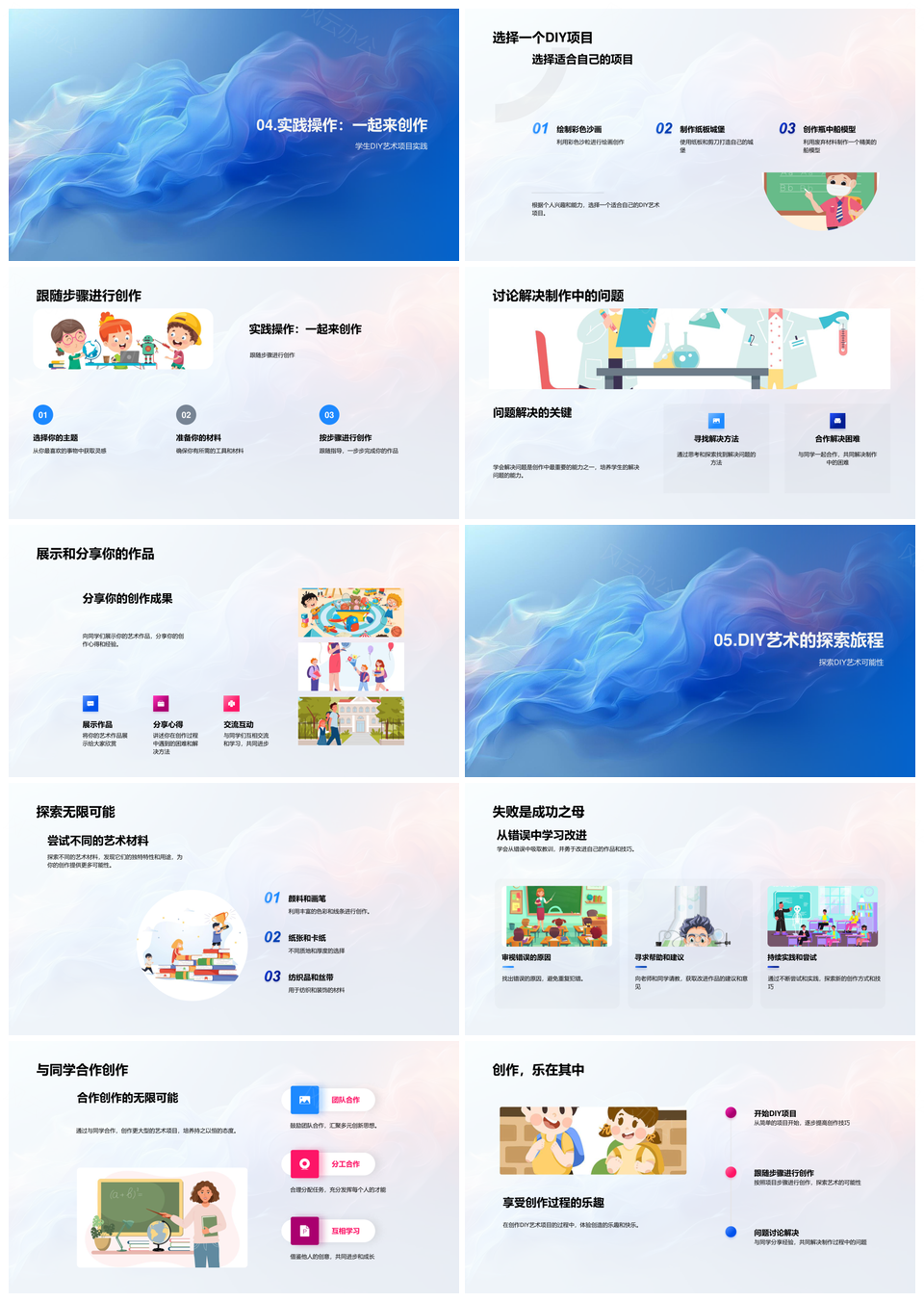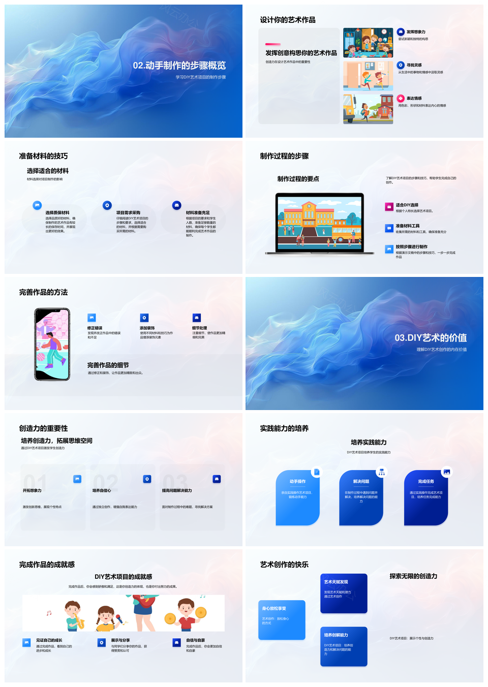 小学DIY艺术创作材料实践培养创造力PPT模板推荐