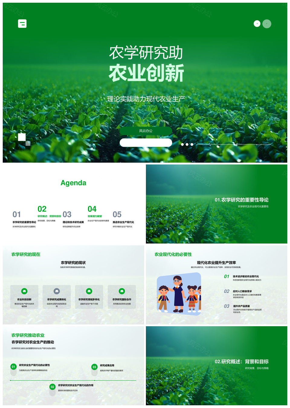 风云办公提供的农学研究创新实践推动农业现代化PPT模板,下载格式为pptx,一共23页,作品中文字及图均可以修改和编辑,图片更改请在作品中右键图片并更换,文字修改请直接点击文字进行修改。