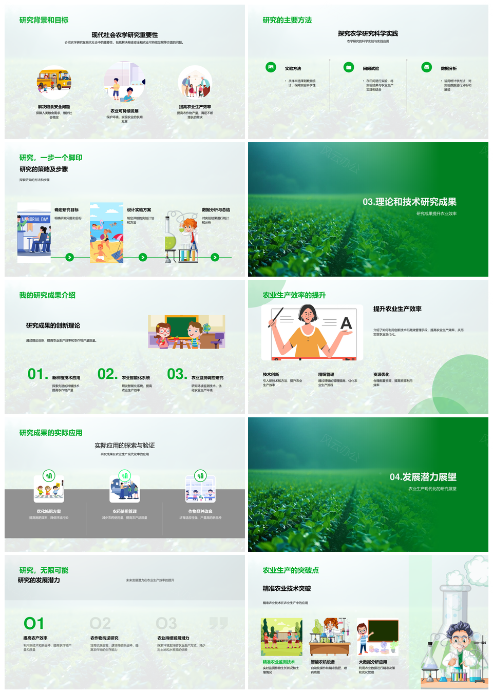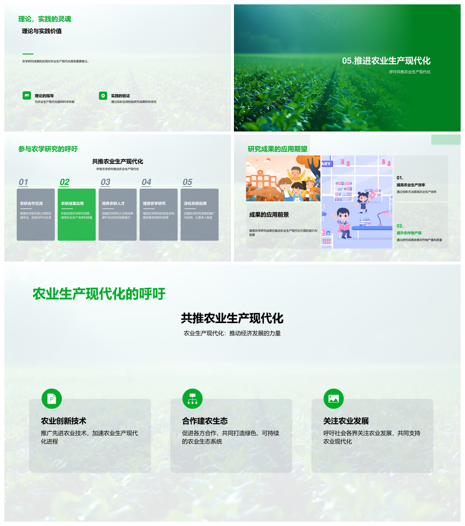 这是一张农学研究创新实践推动农业现代化PPT模板,包含农学、研究、创新、实践、推动、农业、现代化等主题内容,也可用作农学研究创新实践、研究创新实践推动、创新实践推动农业、实践推动农业现代化、农学研究创新、研究创新实践、创新实践推动、实践推动农业、推动农业现代化、农学研究、研究创新、创新实践、实践推动、推动农业、农业现代化等PPT场景使用。