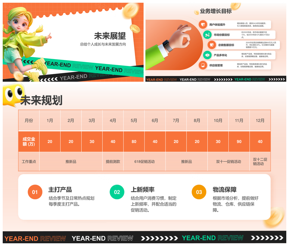 这是一张电商运营年终总结营销策略团队业绩展望PPT模板,包含电商运营、年终总结、营销策略、团队、业绩、展望等主题内容,也可用作电商运营年终总结营销策略、运营年终总结营销策略团队、年终总结营销策略团队业绩、营销策略团队业绩展望、电商运营年终总结、运营年终总结营销策略、年终总结营销策略团队、营销策略团队业绩、团队业绩展望、电商运营、运营年终总结、年终总结营销策略、营销策略团队、团队业绩、业绩展望等PPT场景使用。 风云办公提供的电商运营年终总结营销策略团队业绩展望PPT模板,下载格式为pptx,一共21页,作品中文字及图均可以修改和编辑,图片更改请在作品中右键图片并更换,文字修改请直接点击文字进行修改。